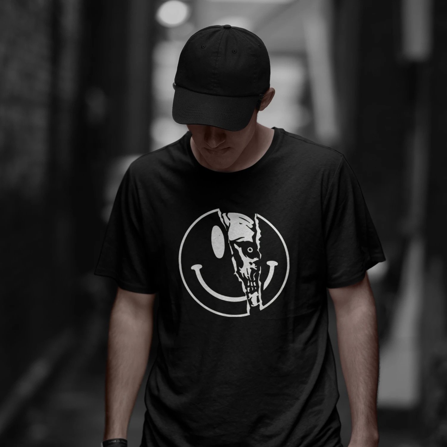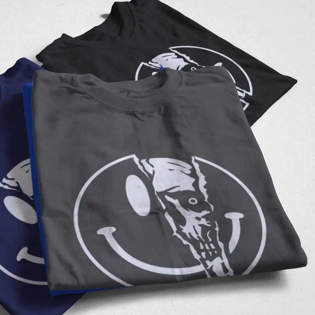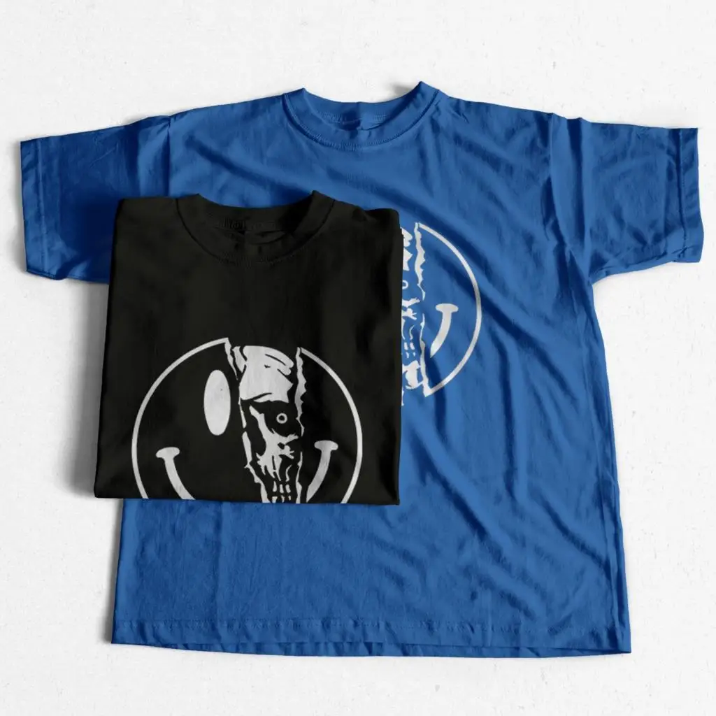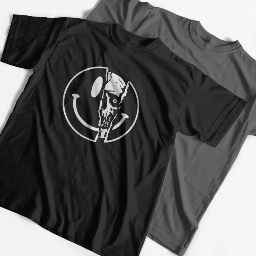 100% хлопок, уличная Мужская футболка с черепом и смайликом, повседневная свободная Мужская футболка с коротким рукавом, футболка с круглым вырезом, мужские футболки, топы