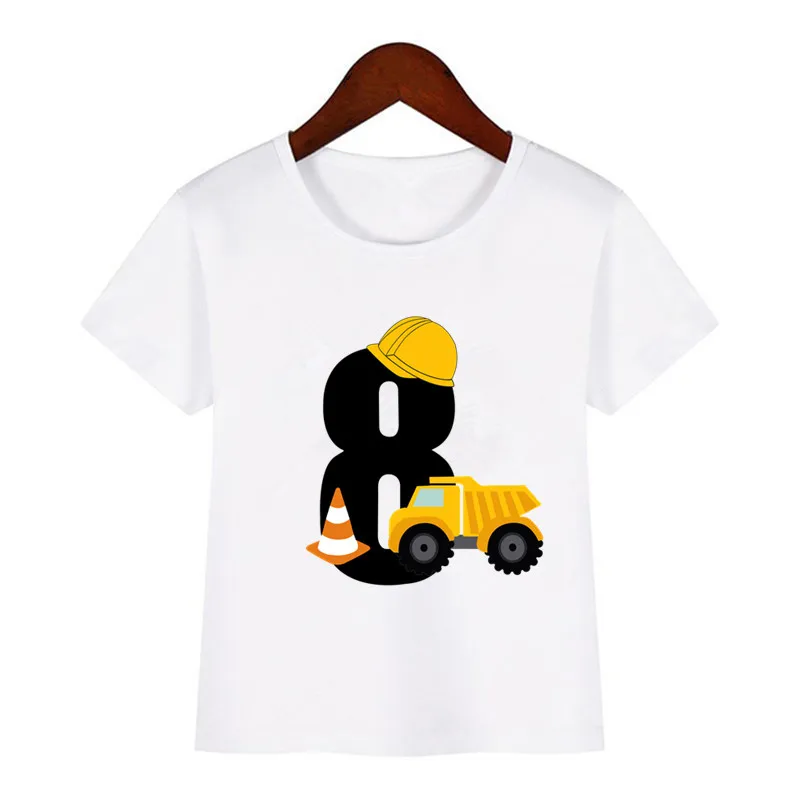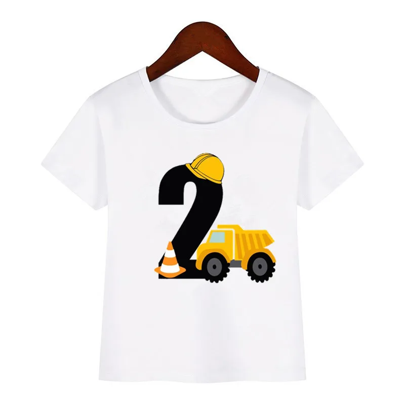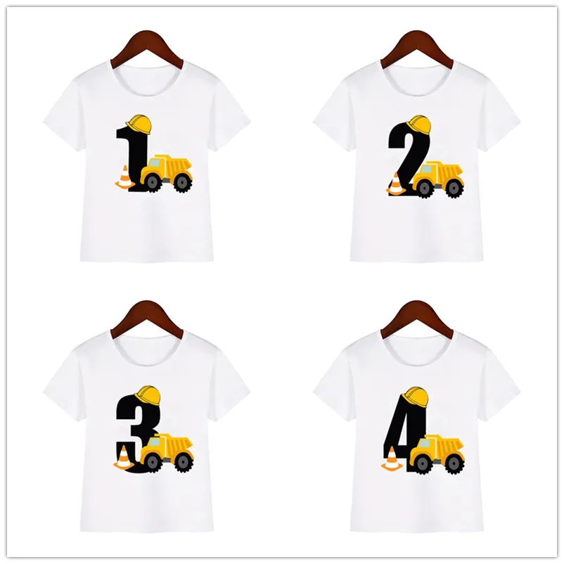 Детские футболки для мальчиков, детские топы с коротким рукавом и экскаватором, детская модная футболка для мальчиков, рубашка для строительства и дня рождения