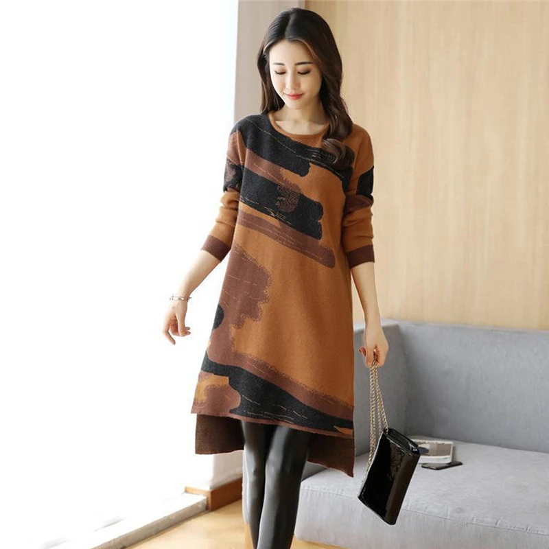 Женское ТРАПЕЦИЕВИДНОЕ ПЛАТЬЕ с принтом, Повседневное платье-свитшот с длинным рукавом, пуловер в Корейском стиле на осень и зиму