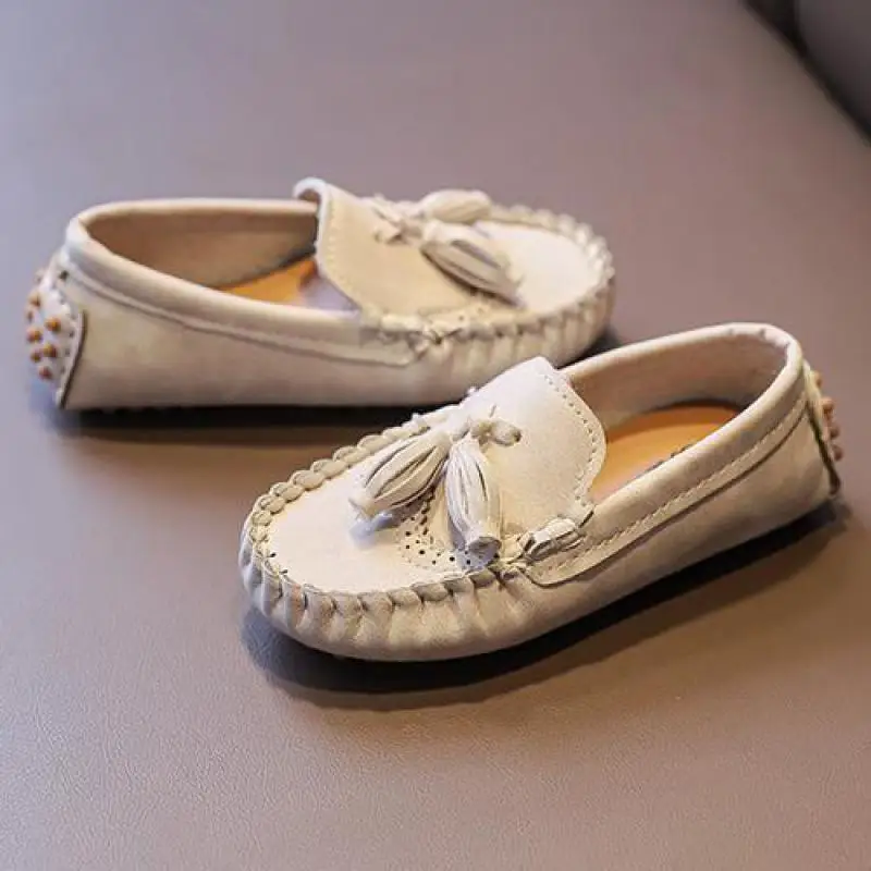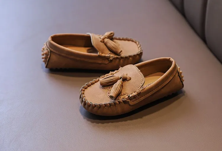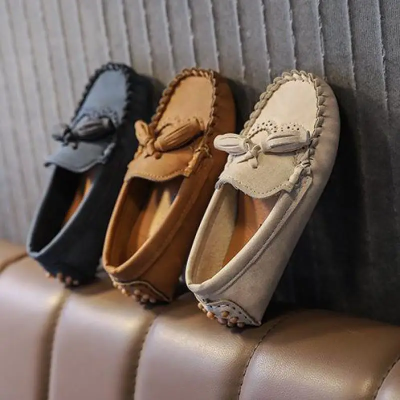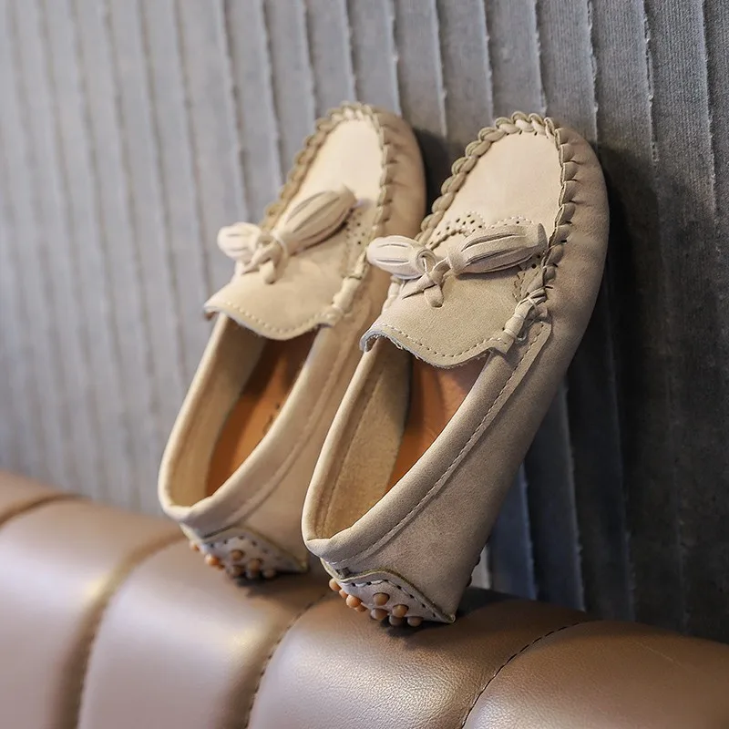 Детские лоферы с круглым носком, замшевая обувь для отдыха, с нейтральной мягкой подошвой, Детская осенняя модная кожаная обувь на плоской подошве