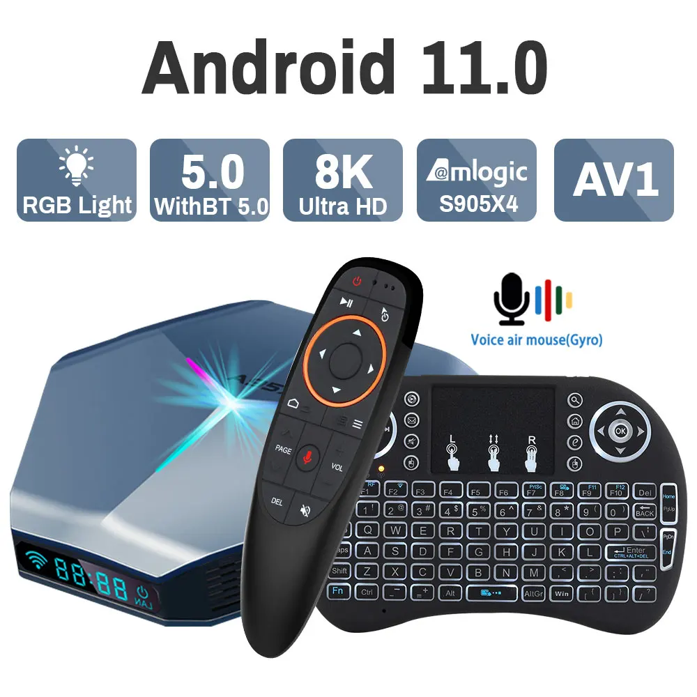 Transpeed Android 11A95X F4 ТВ приставка RGB Light Amlogic S905X4 двойной Wifi 8K 3D 16G 32G 64G 128G Быстрый набор ТВ ресивер медиаплеер