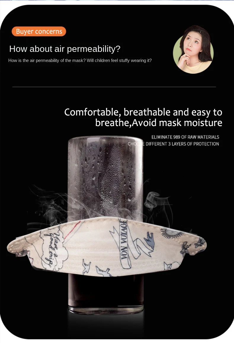 Маска для лица KN95 для детей 4-10 лет, многоразовая тонкая дышащая...