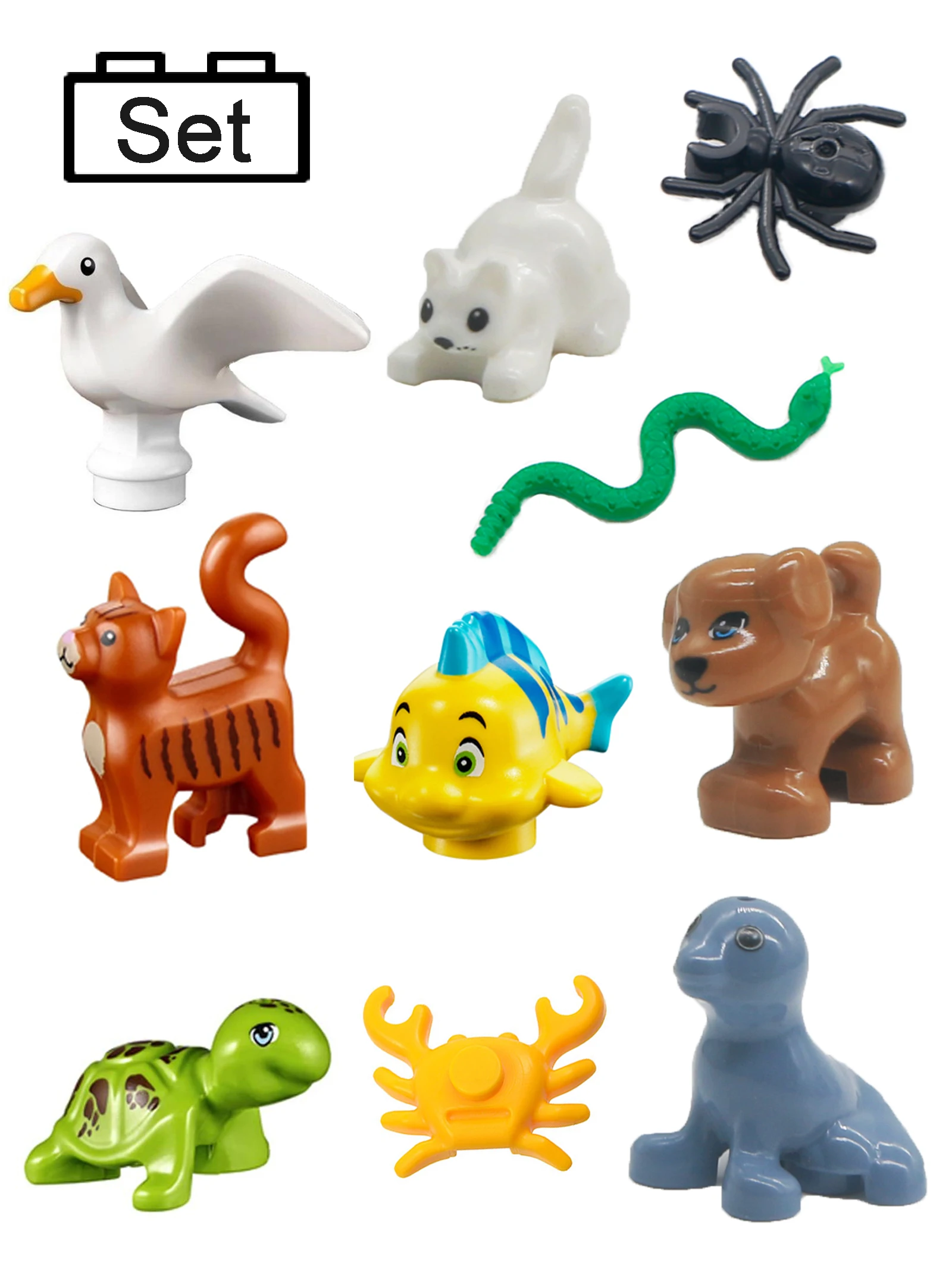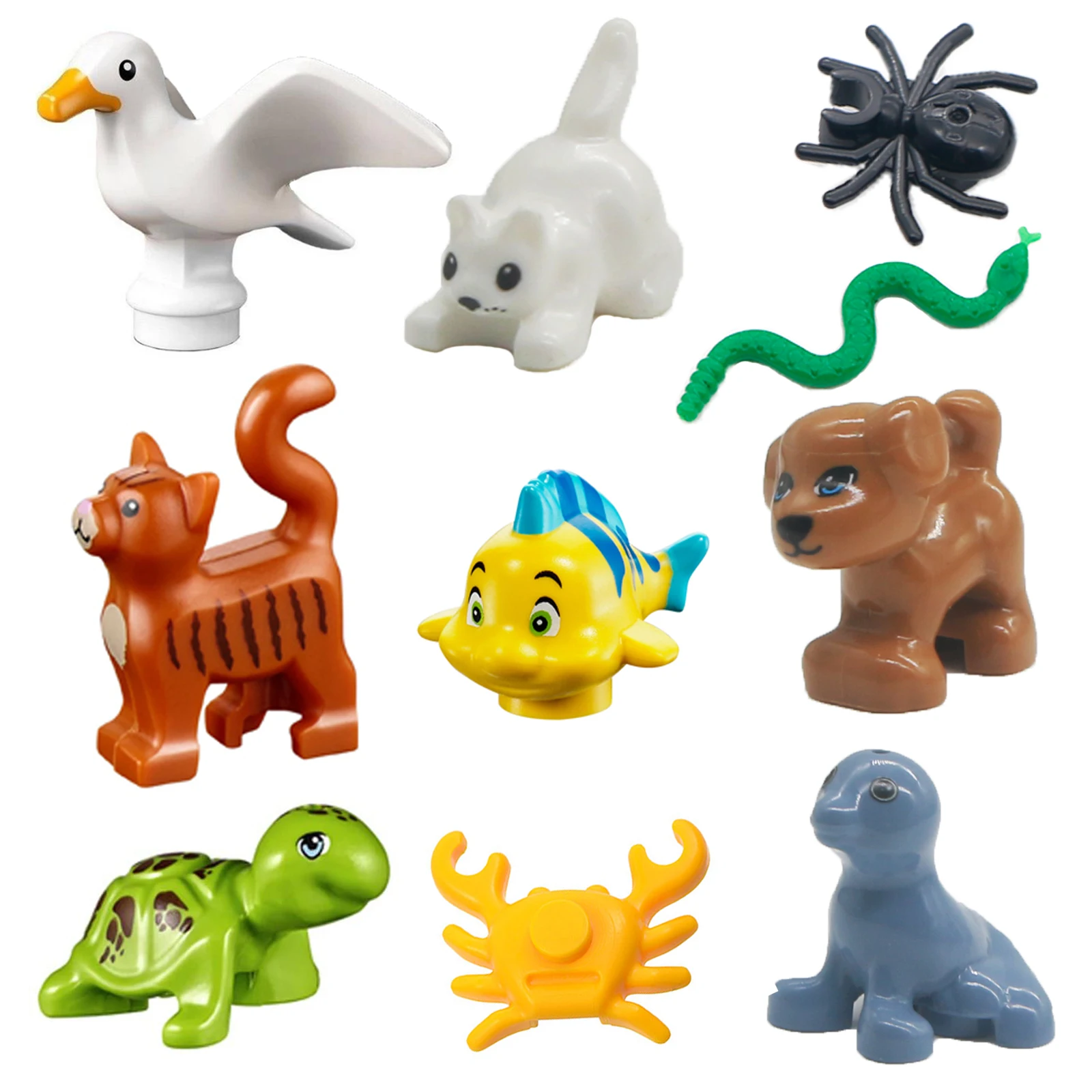 Фигурки животных друзья, 10 шт. в наборе, строительные блоки, город, кот, собака, щенок, Чайка, черепаха, клоун, паук, кубики, MOC, аксессуары, игрушки