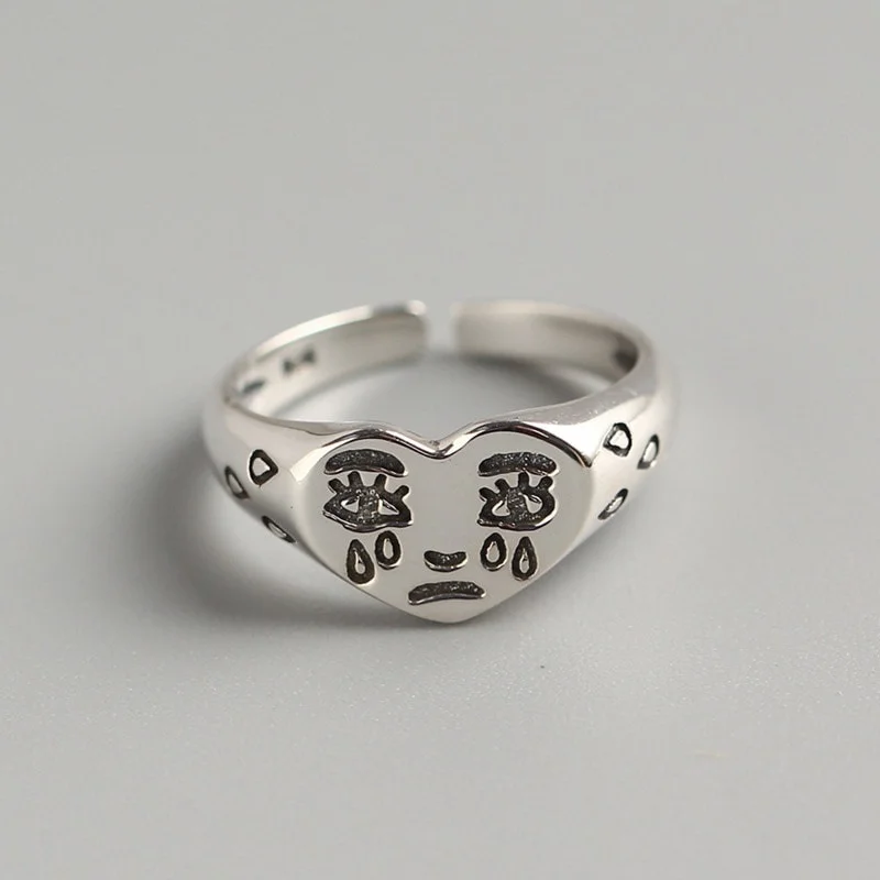 Женское регулируемое кольцо из нержавеющей стали, винтажное Открытое кольцо из нержавеющей стали с изображением плача, слезы, сердца и лица