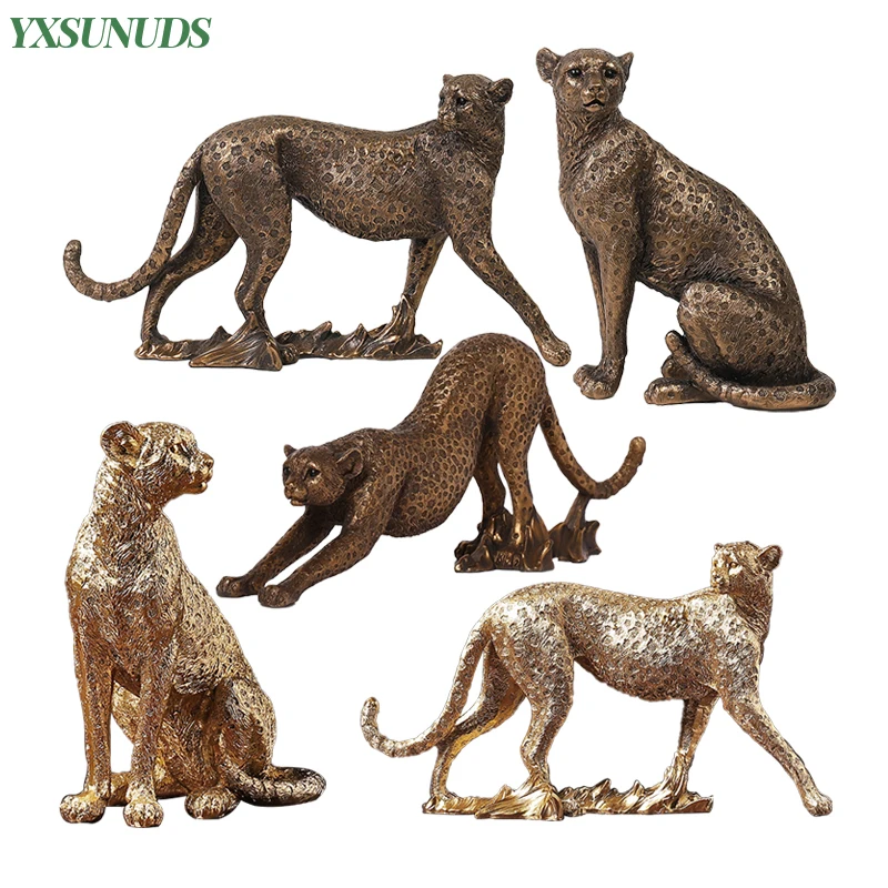 Features7Resin Leopard Miniaturas Sculpture Art Artwork Gift