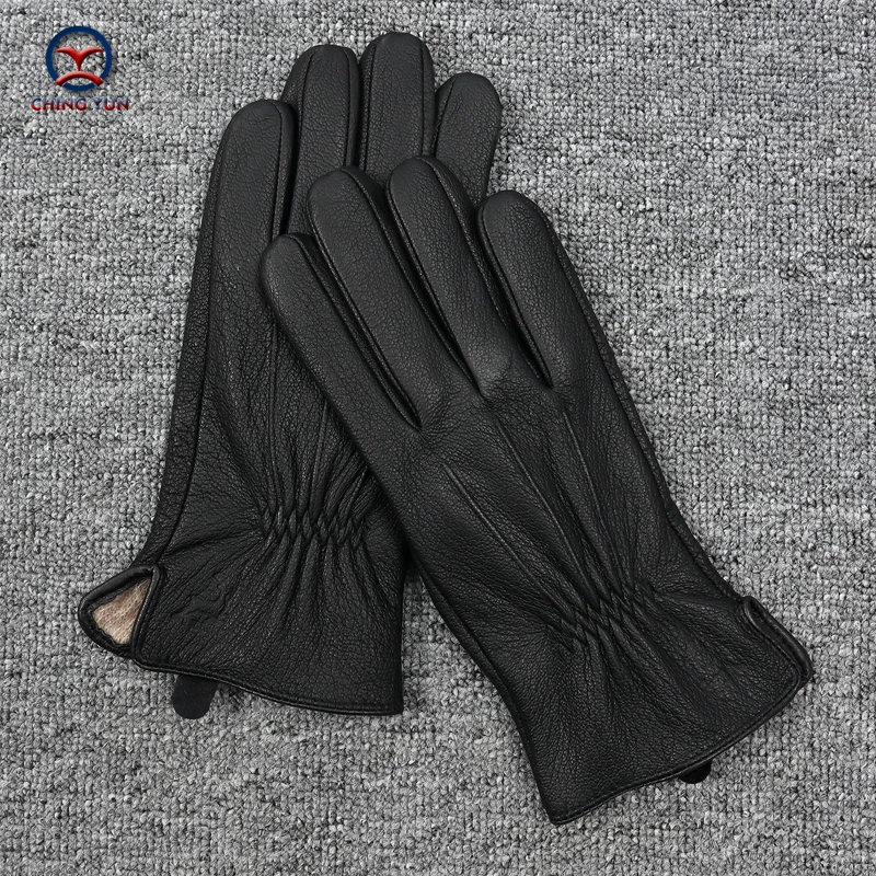Новинка 2021, зимние мужские перчатки из оленьей кожи, мужские теплые и мягкие мужские перчатки, черные мужские перчатки, варежки с подкладкой из искусственной 70% шерсти