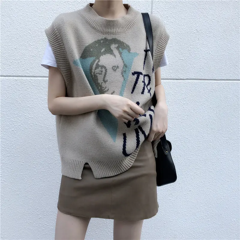 Винтажный Трикотажный жилет Joinyouth с круглым вырезом, Женский ве...
