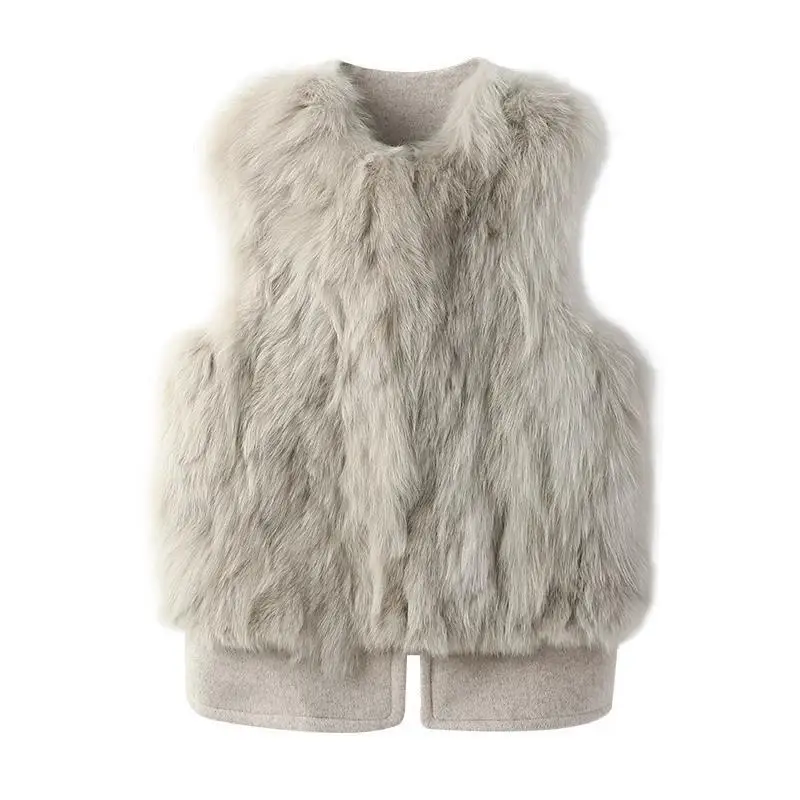 Осень-зима 2021, женский модный жилет из искусственного лисьего мех...