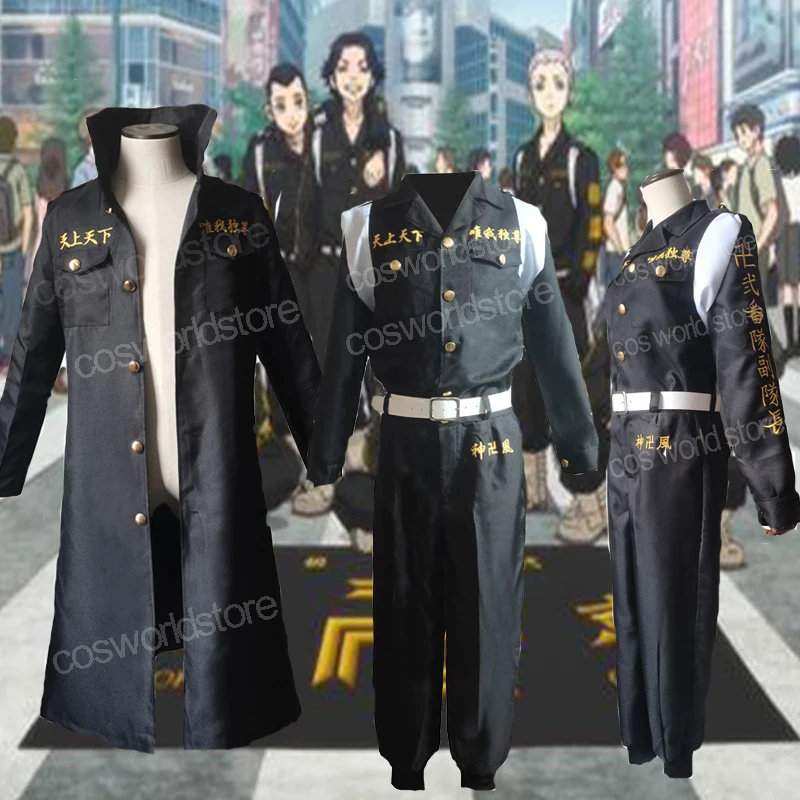 Tokyo Revengers Manjiro Sano костюм для косплеяВышивка Черная форма Вечерние костюмы для хеллоуина Matsuno Chifuyu Manji Gang Ken Ryuguji, кимоно, накидка, наряды