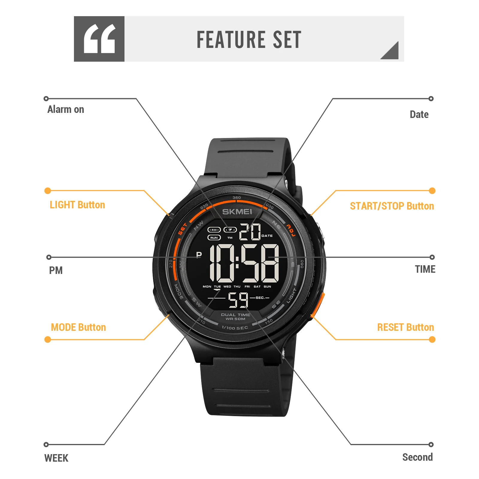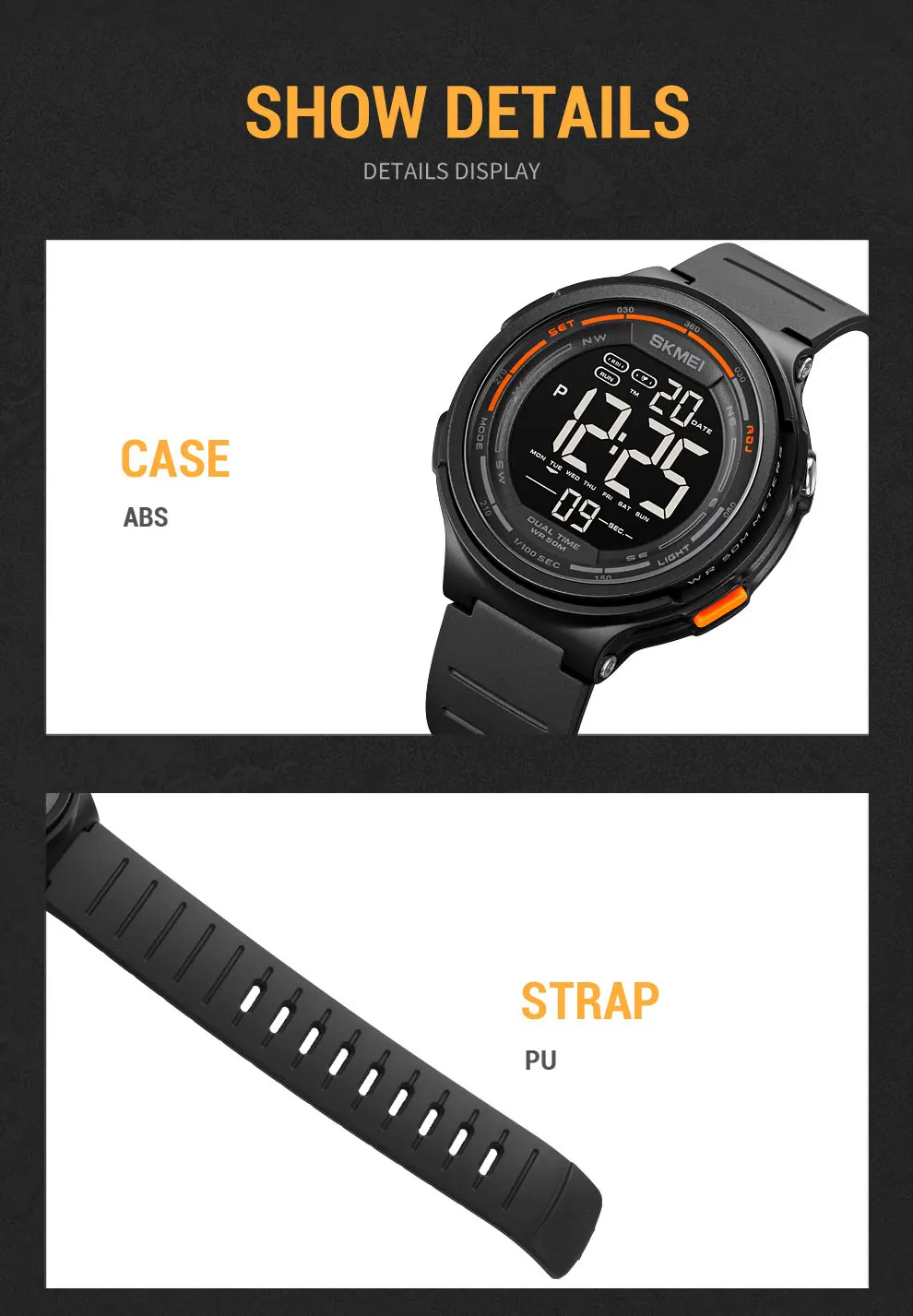 SKMEI светодиодный светильник Цифровые мужские спортивные часы 5 ба...