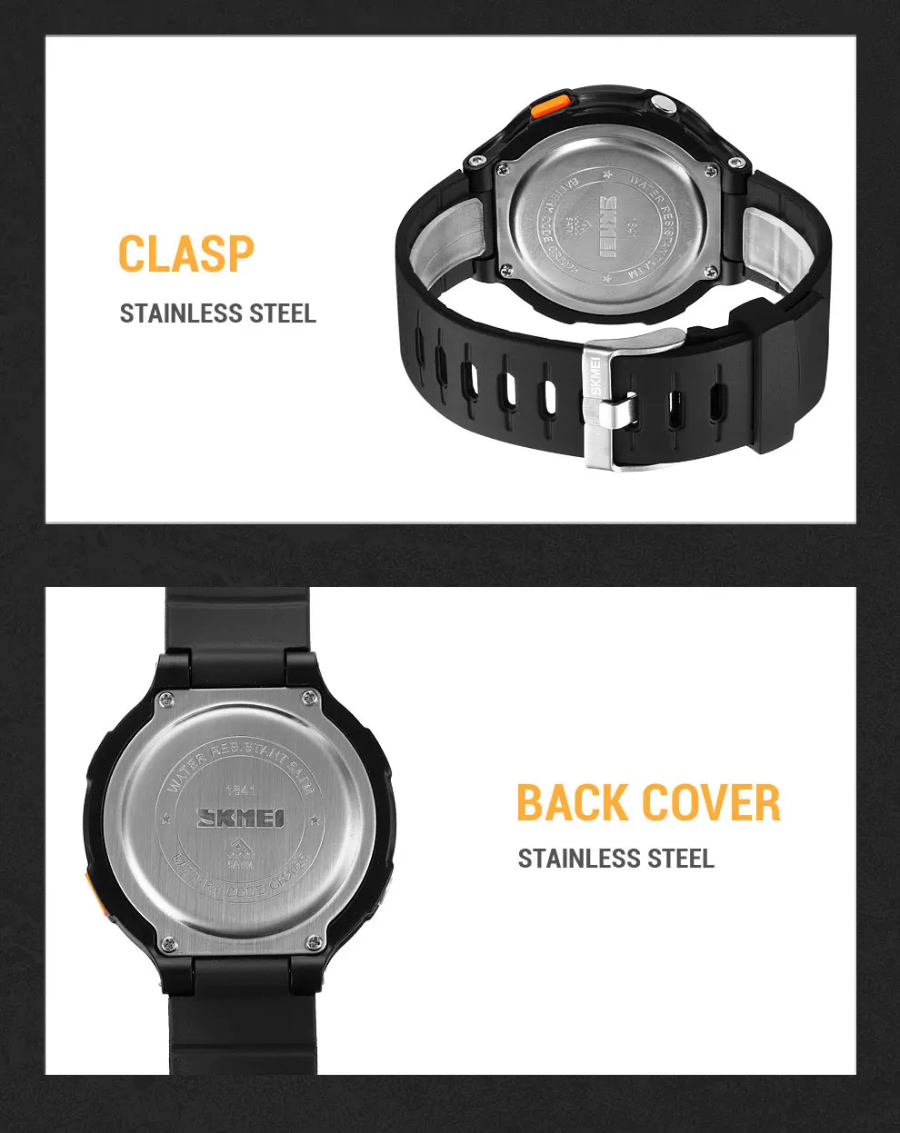 Часы наручные SKMEI мужские электронные, спортивные цифровые водонепроницаемые светодиодсветильник, с секундомером и будильником, с 2-мя часовыми поясами