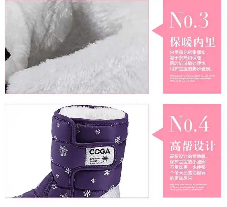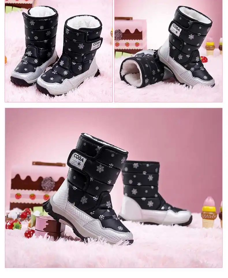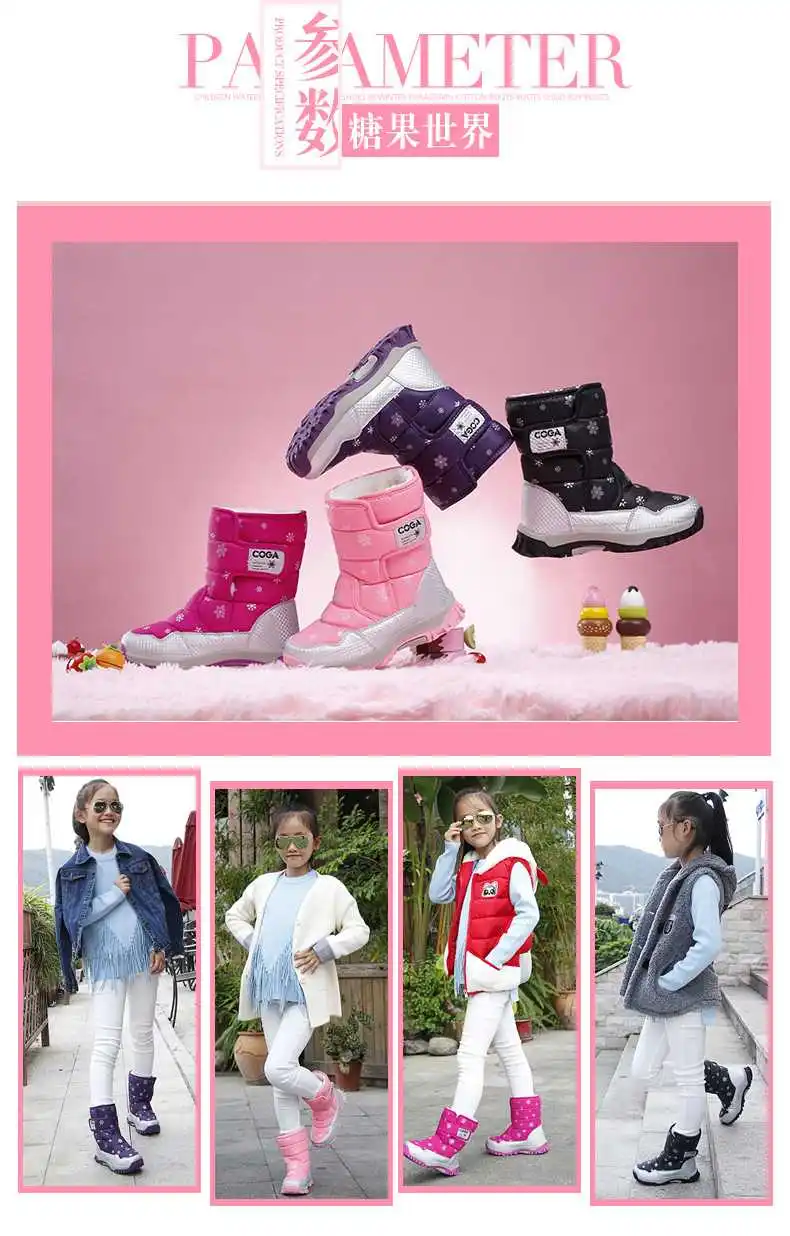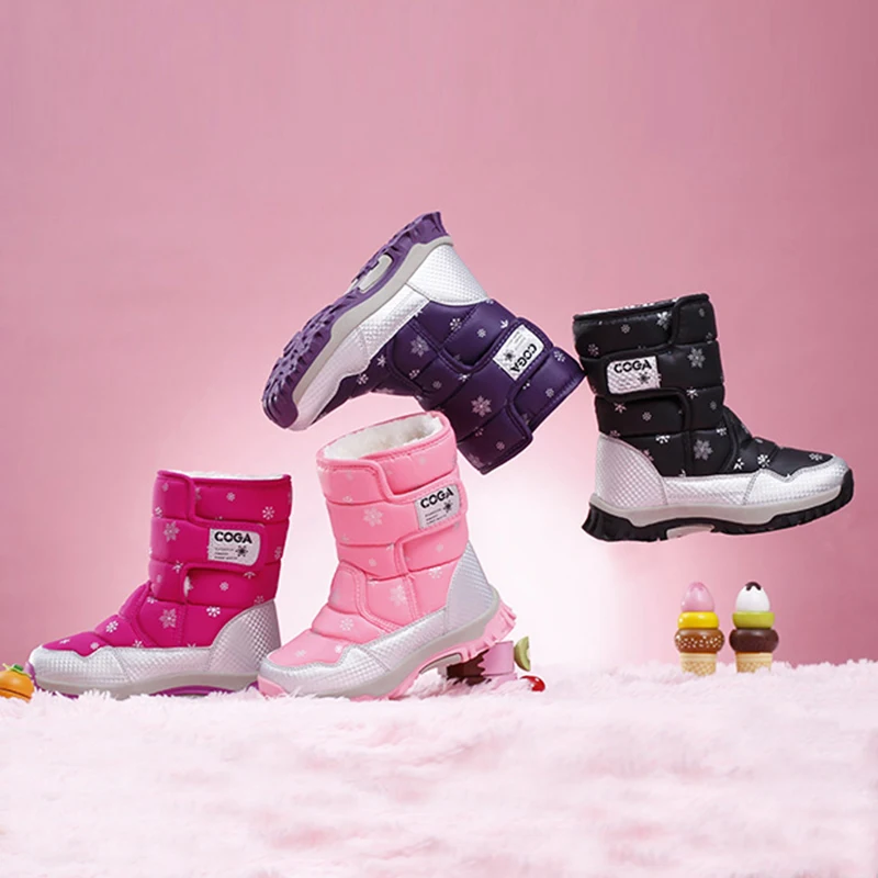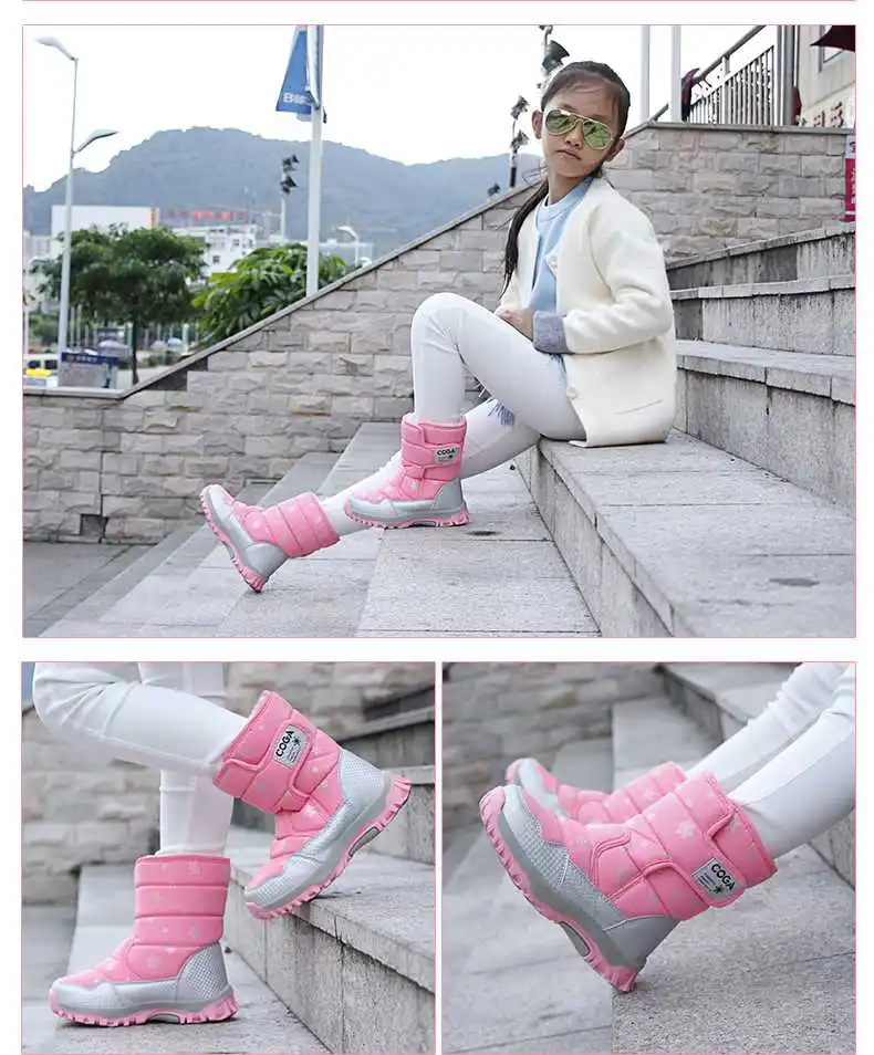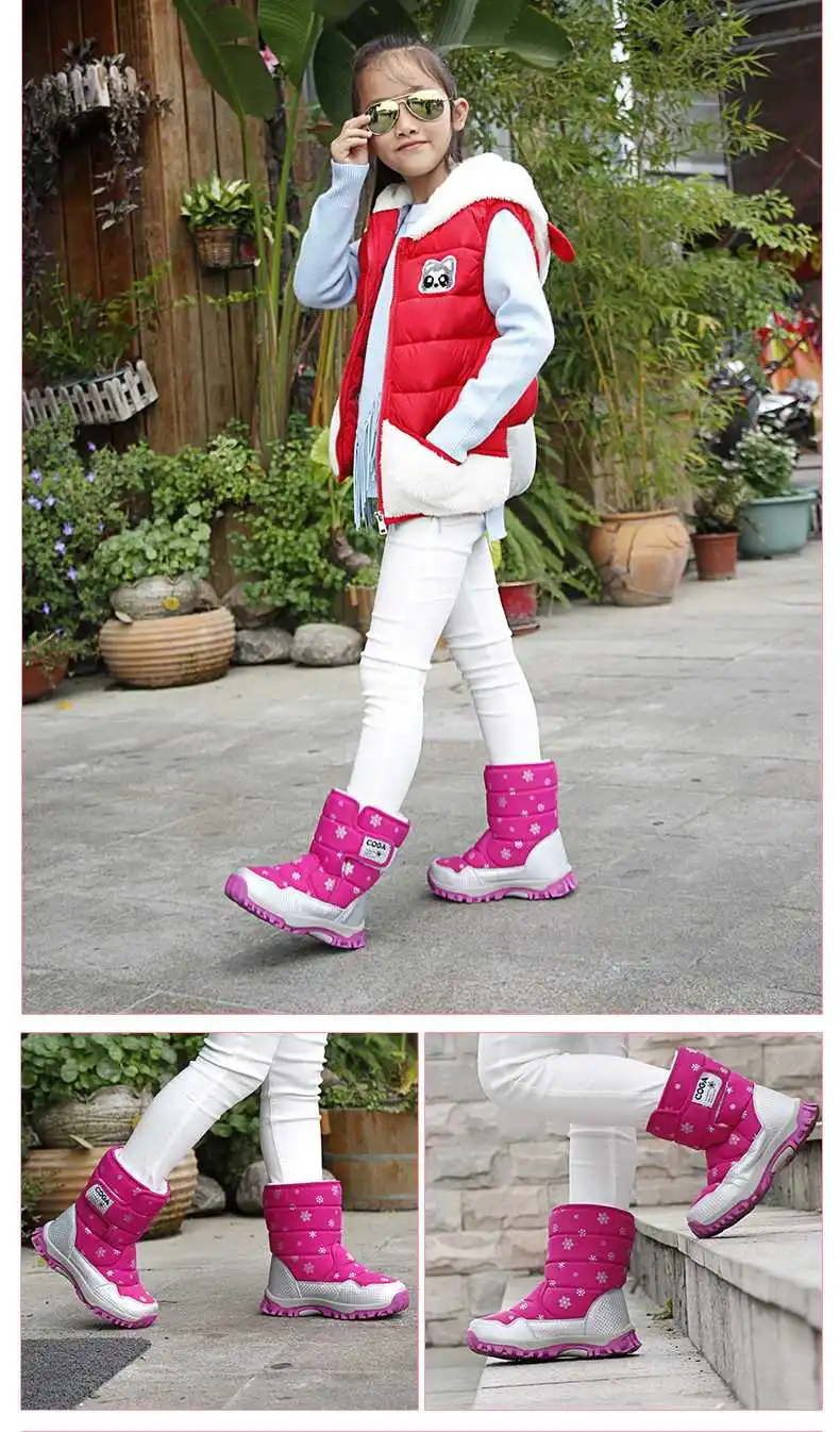 Ботинки для девочек 2021, Повседневная модная детская зимняя обувь для снега, детские Нескользящие розовые теплые хлопковые кроссовки для мальчиков