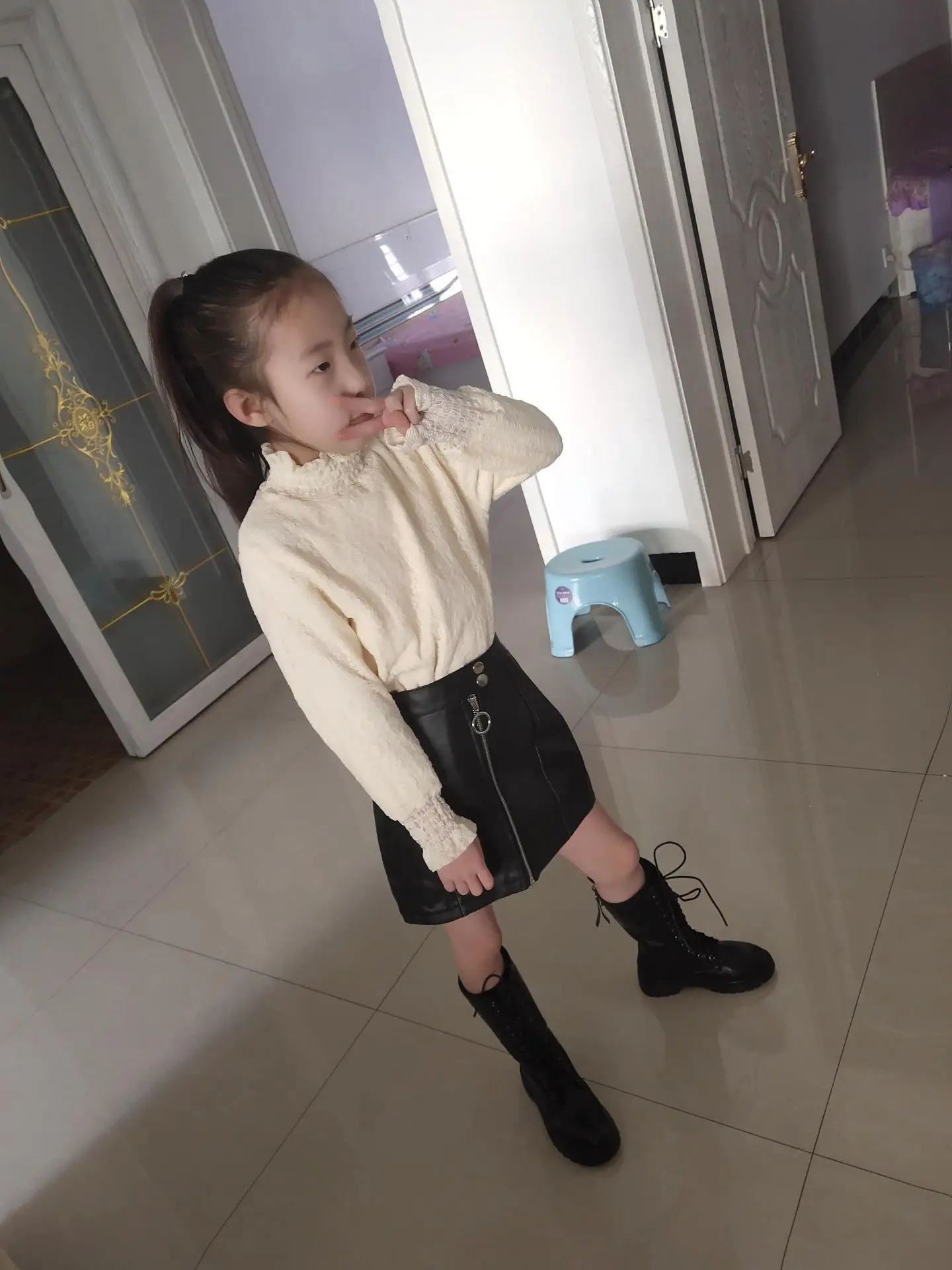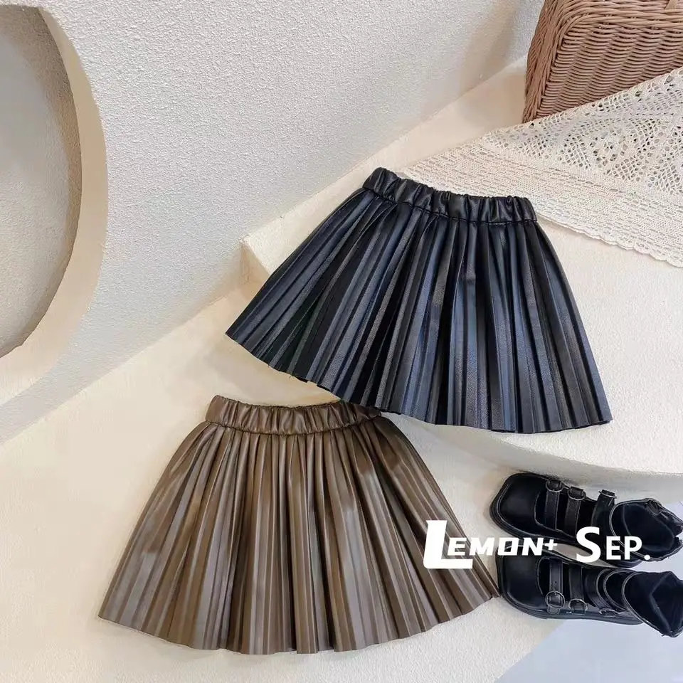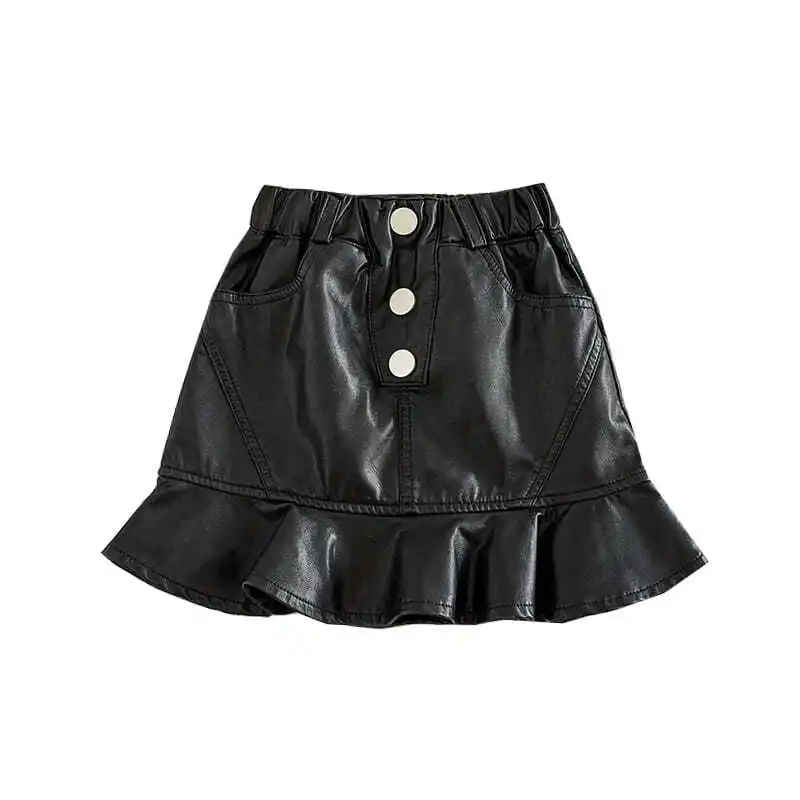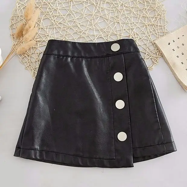 Юбка из искусственной кожи для девочек, на осень-зиму и лето, 2021