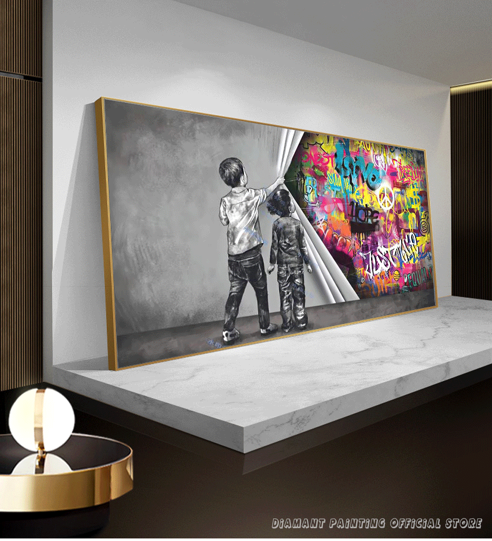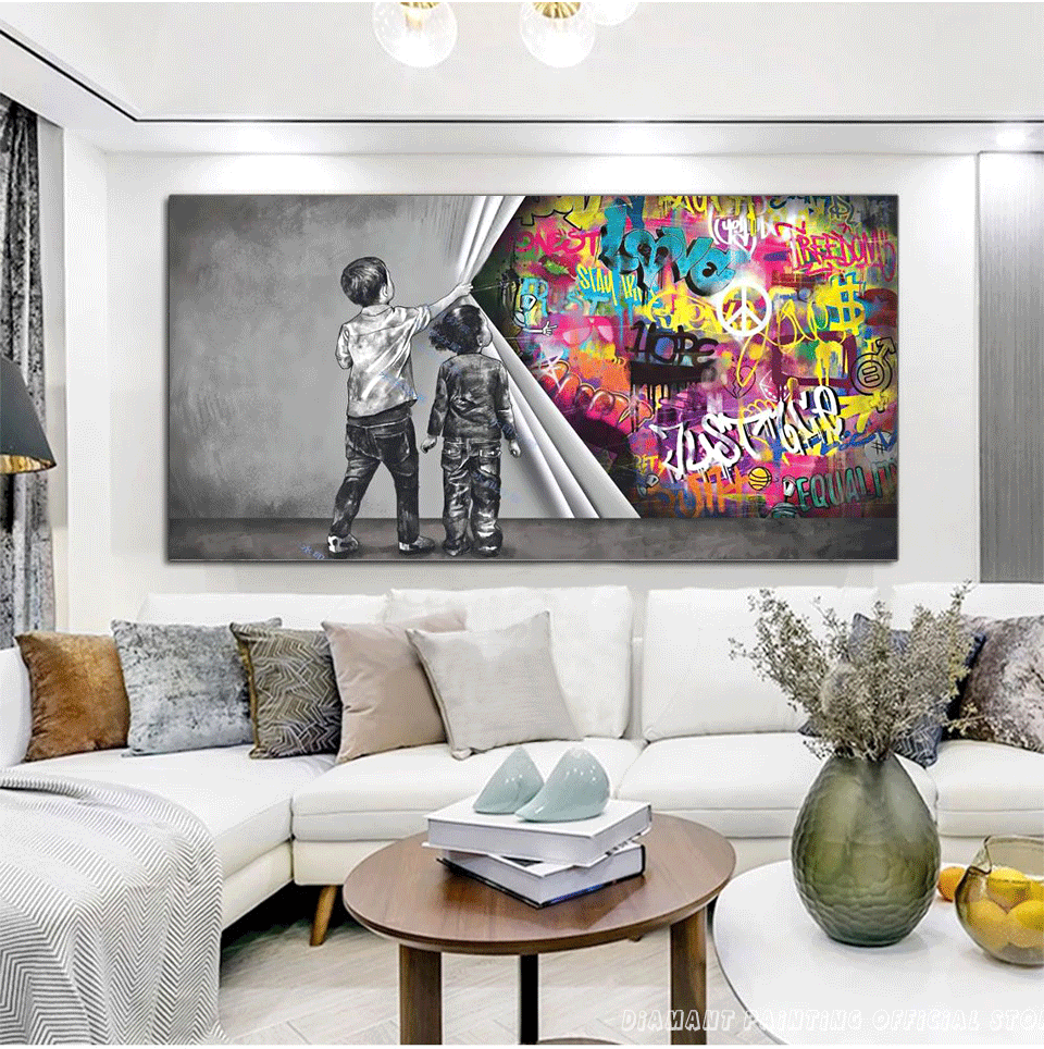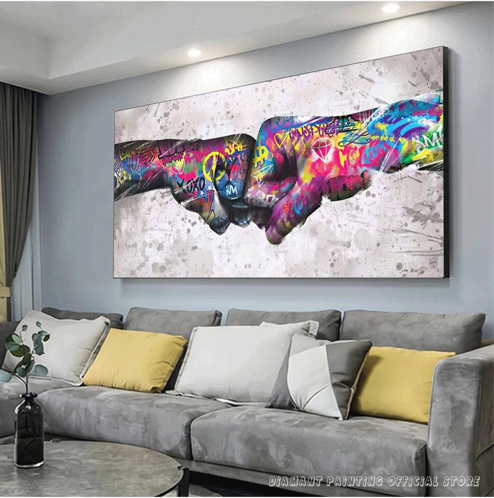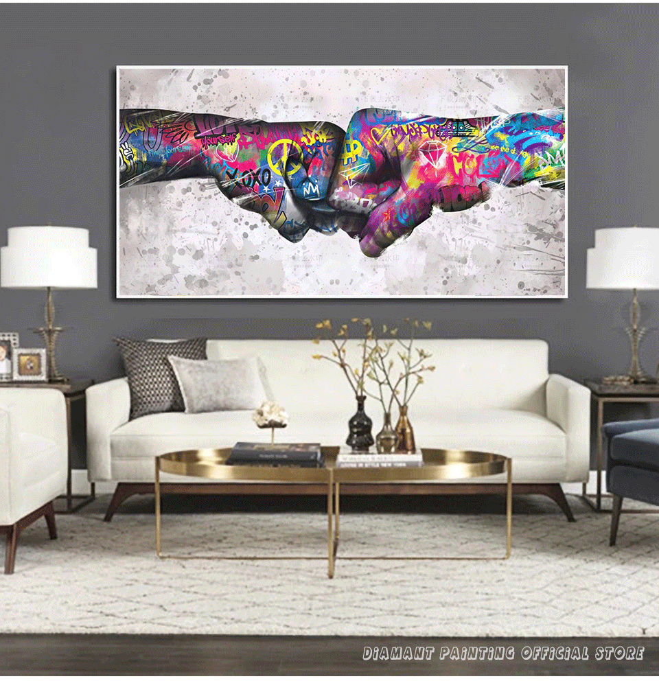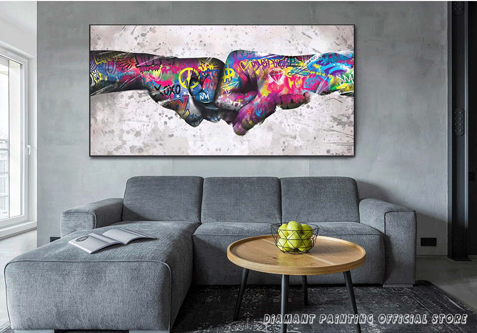5D полноразмерная картина с изображением детей, граффити, абстрактный кулак, передвижная скоба, Настенная картина, алмазная живопись, домашний декор, картина для гостиной
