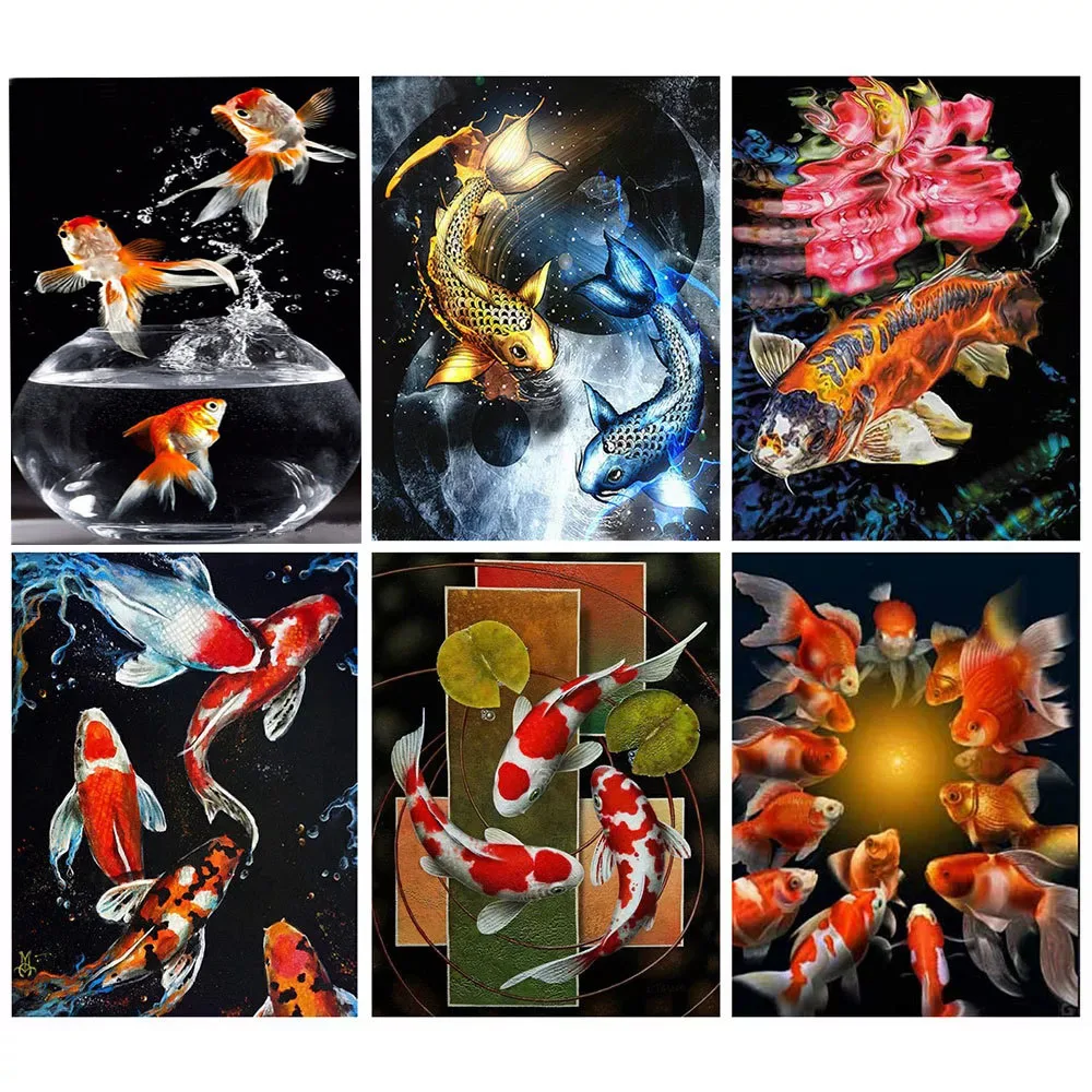 Искусственная алмазная живопись, мозаика в виде рыб, картины, полная вышивка, квадратныекруглые алмазные вышивки, животные, домашний декор