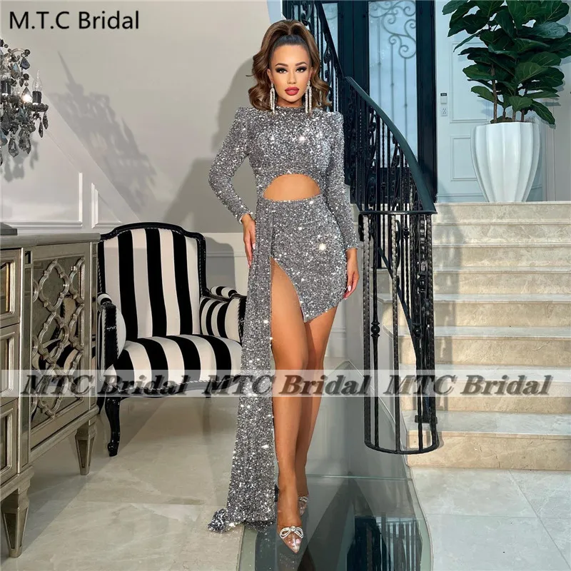 Женское короткое вечернее платье, серое платье-футляр с длинным рукавом, сексуальное мини-платье с вырезом для вечевечерние НКИ, на заказ, 2021