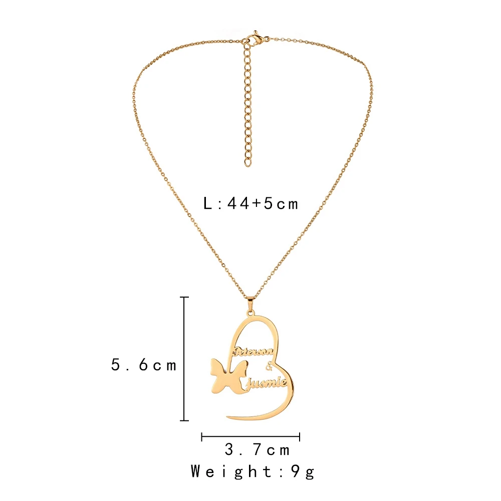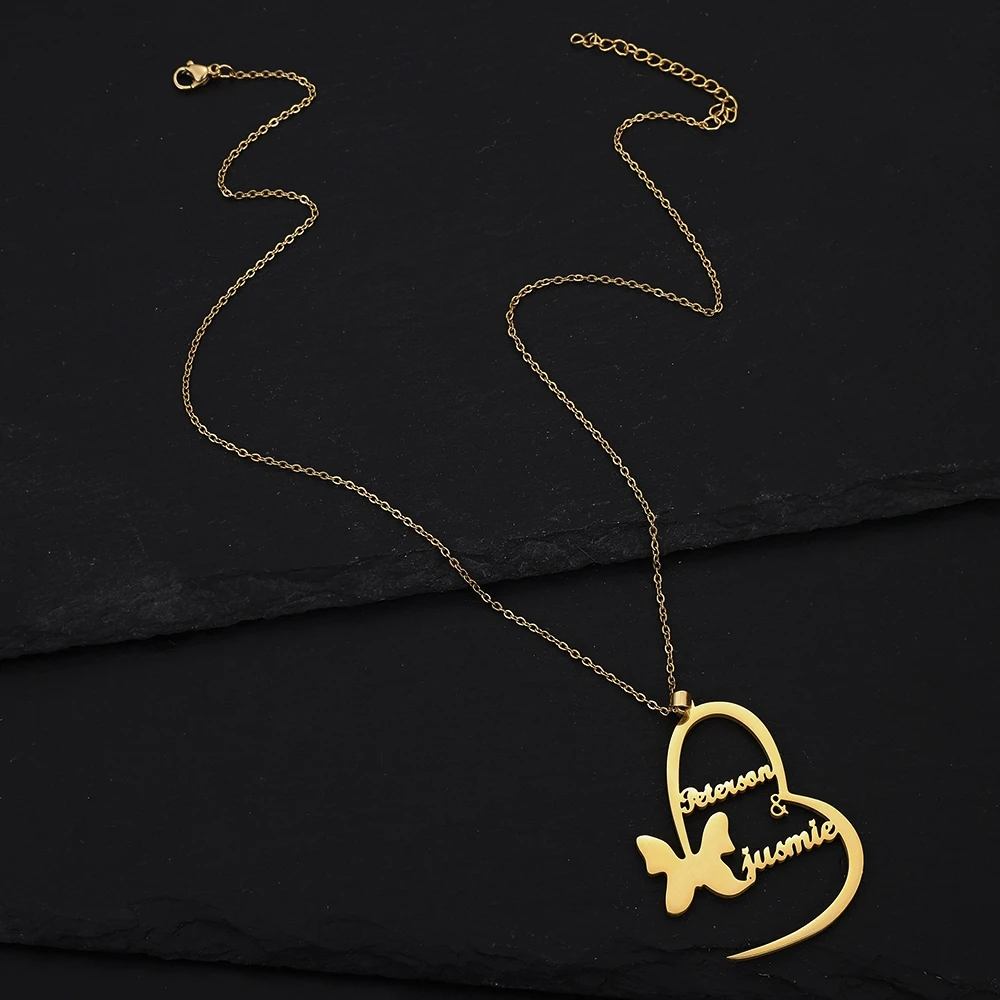 Ожерелье с именем бабочки и сердцем, из нержавеющей стали