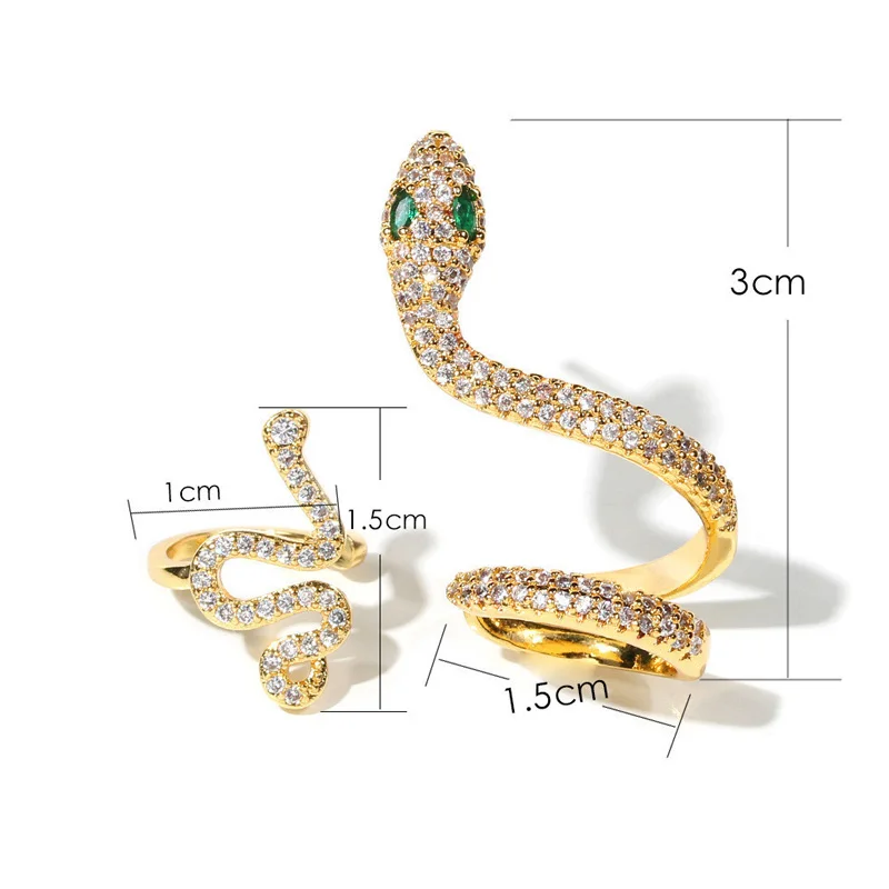 Женские серьги-клипсы в виде змеи, винтажные золотые клипсы с цирконом, серьги-клипсы в стиле панк, Индивидуальные ювелирные изделия, подарочные аксессуары, 2021