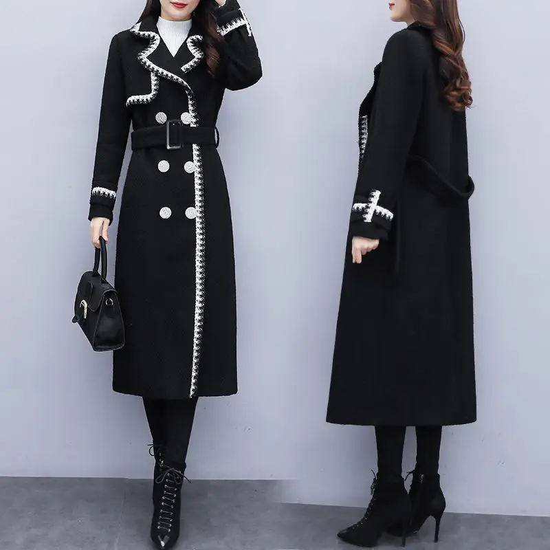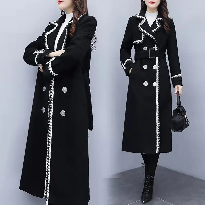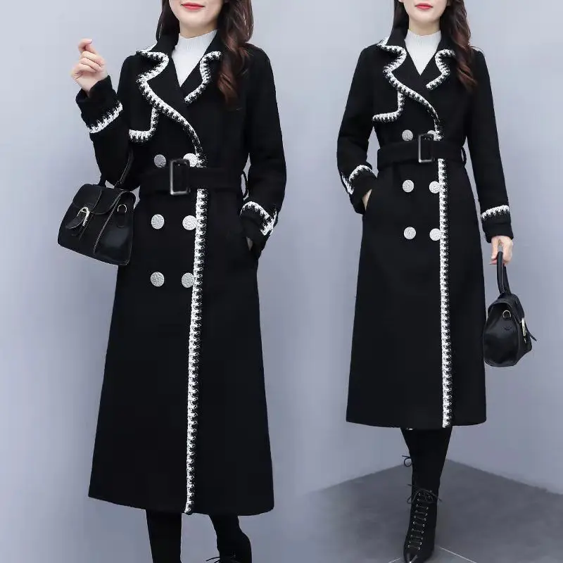 Куртка Шерстяная женская зимняя, черная, облегающая, 2021