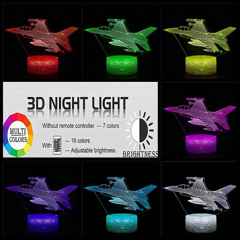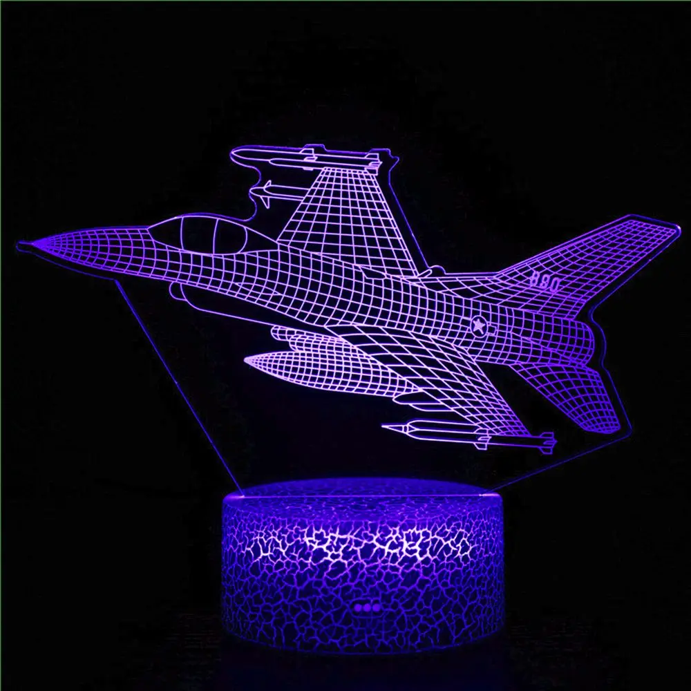Крутой иллюзионный самолёт 3D с голограммой, светодиодный ночсветильник для мальчиков, украшение детской комнаты, самолёт для влюбленных, лучшие подарки для детей