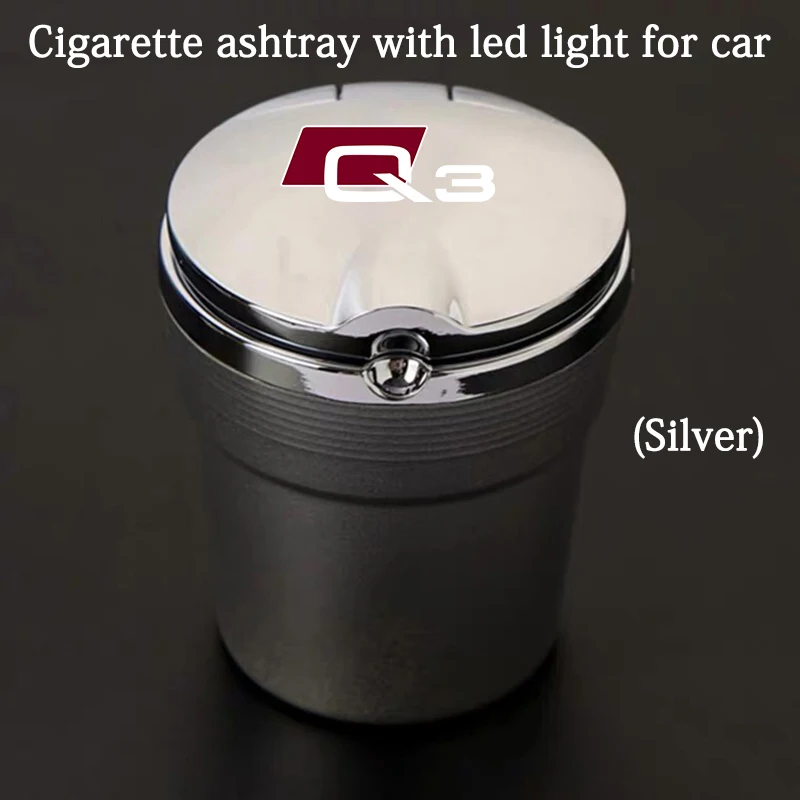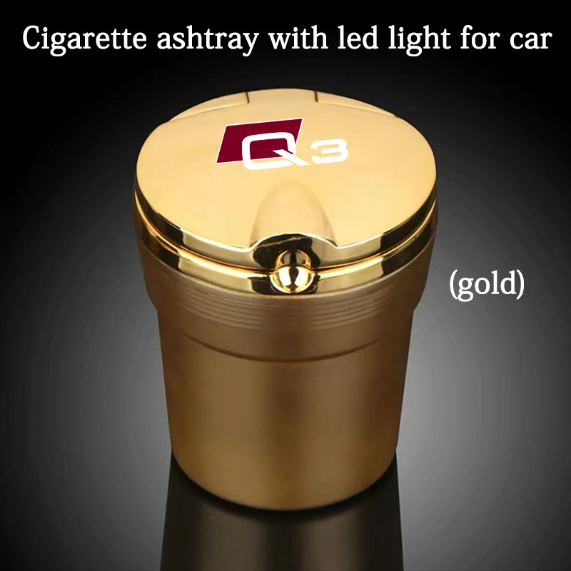 Аксессуары автомобильная пепельница с синим светодиодным ночным освещением, различные металлические стильные логотипы, подходящие для Audi Q3