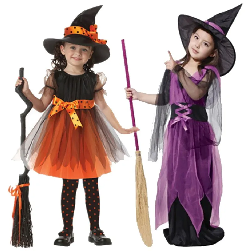 Детский Рождественский костюм ведьмы с шапкой и метлой на Хэллоуин