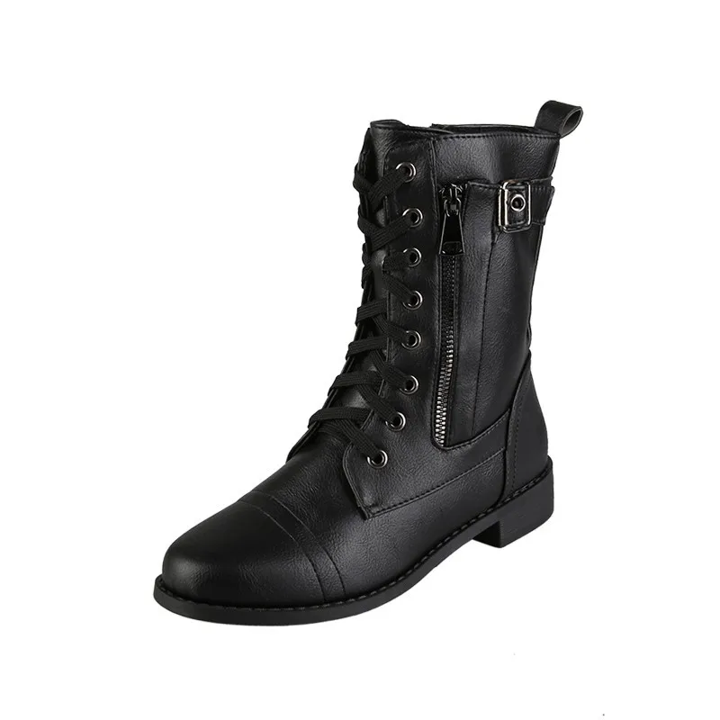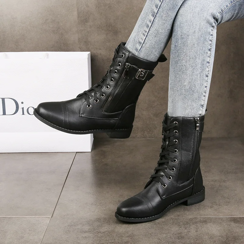 Женские ботильоны из искусственной кожи, на шнуровке, с круглым носком