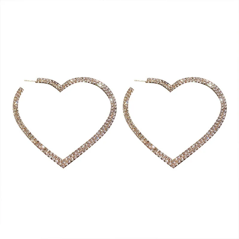Женские серьги-кольца XIALUOKE, золотистые геометрические серьги-гвоздики с большим сердцем и кристаллами, роскошные стразы, вечерние ювелирные изделия