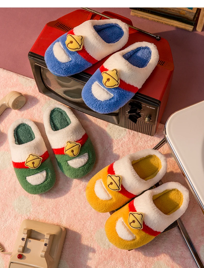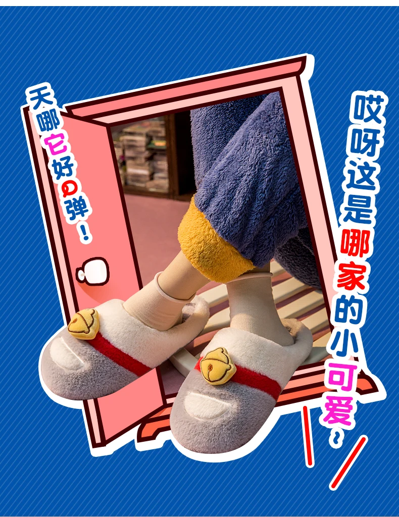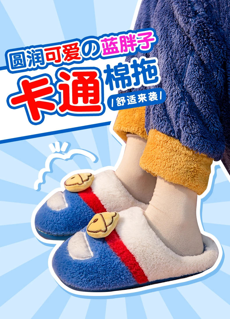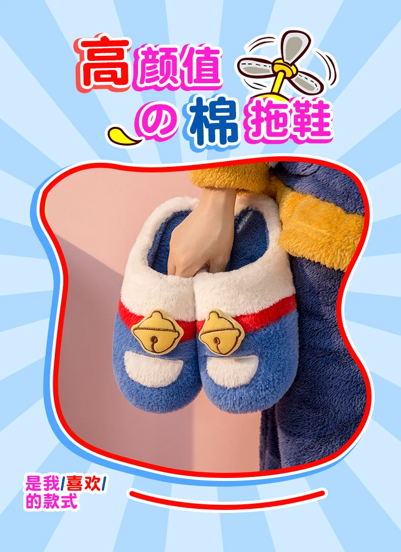 Женские хлопковые тапочки для девочек, модные милые домашние тапочки для спальни, бархатные теплые Нескользящие домашние тапочки унисекс для пар Doraemon для детей и взрослых, 45