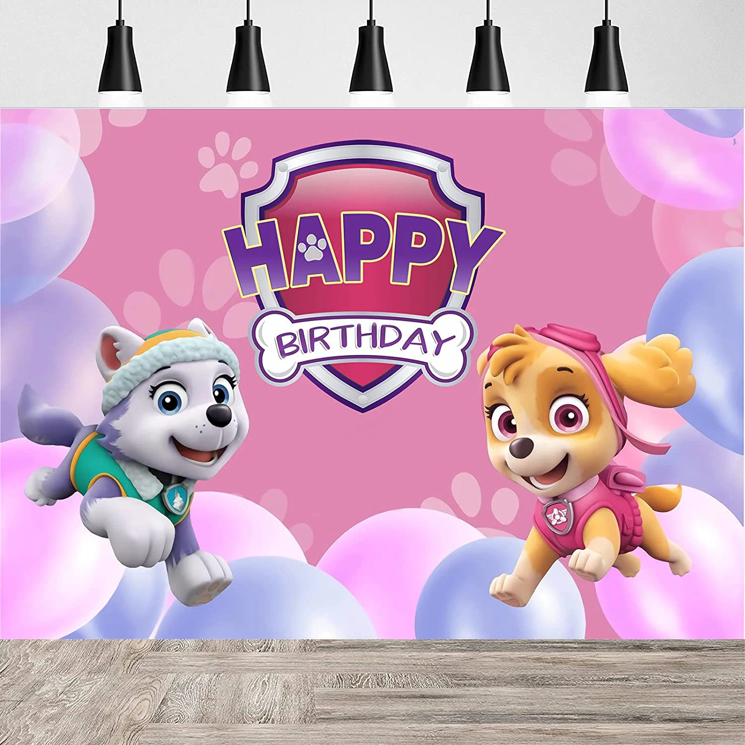 Розовый мультяшный собачий патруль Летающий тематический фон для фотосъемки для девочек принцесса фон на день рождения баннер для вечеринки в честь будущей мамы