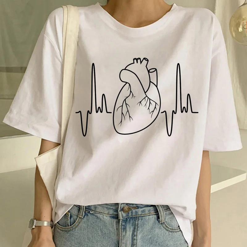Футболка женская с принтом ЭКГ, модный топ в стиле Харадзюку улзанг...