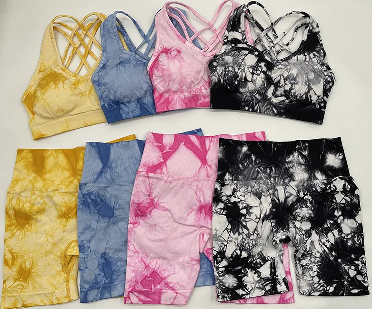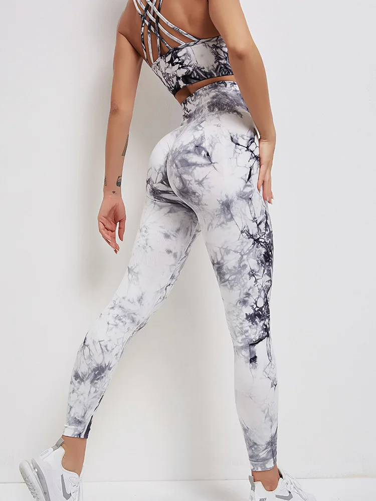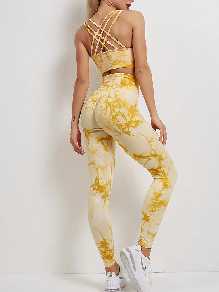 Эластичная одежда для йоги Tie-dye, спортивный комплект, женские обтягивающие леггинсы для бега, костюм для фитнеса, новый трикотажный бюстгальтер для тренировок, женская спортивная одежда