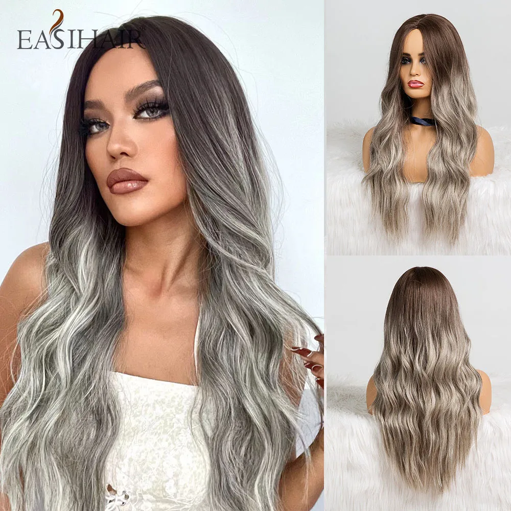 EASIHAIR длинные коричневые блонд Омбре синтетические парики для женщин натуральные волосы волнистые парики термостойкие женские парики косплей