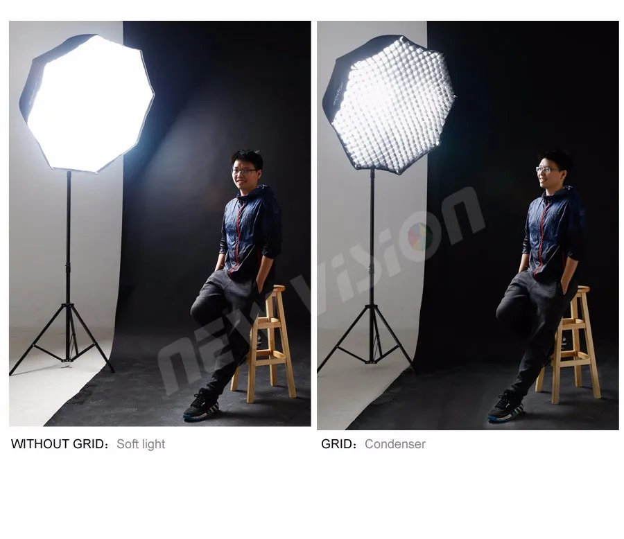 -Мягкий, ровный светильник, качество коробок остается, но сетки позволяют вам иметь более направленный контроль над выходом.
