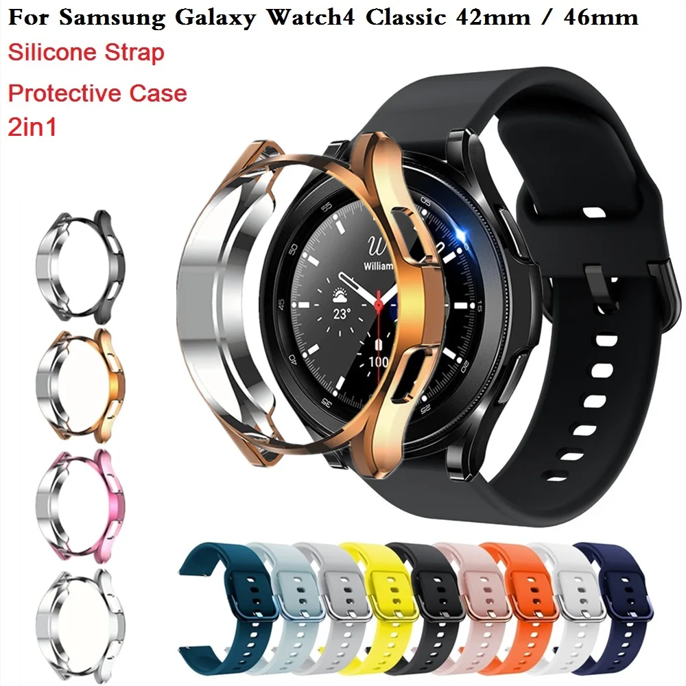 Ремешок и чехол 2 в 1 для Samsung Galaxy Watch 4 40 мм 44 мм, классический силиконовый браслет для умных часов 42 мм 46 мм, аксессуары для часов, бампер из ТПУ