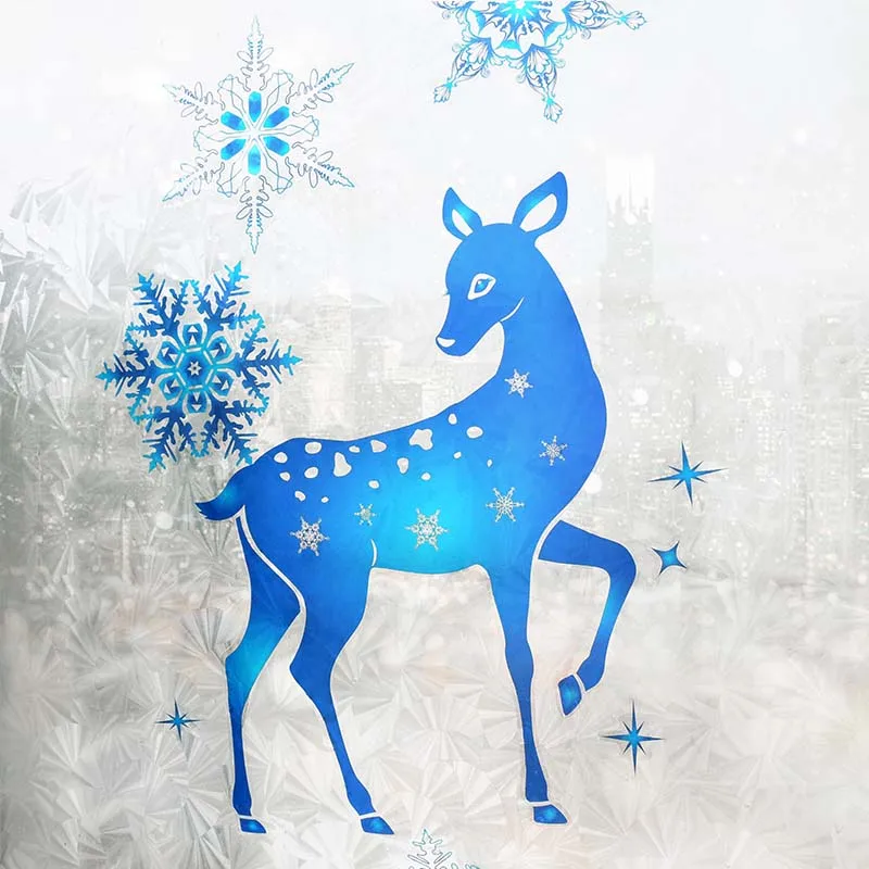 Рождественские наклейки на окна, голубой Звездный олень, Рождествен...
