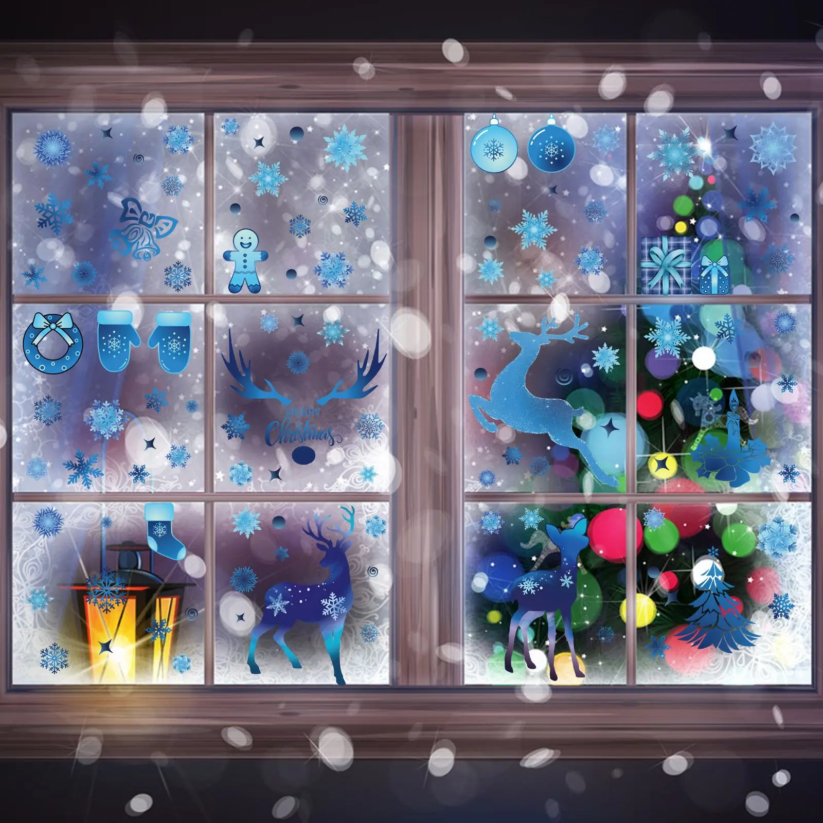 2022 новые рождественские синие снежинки Лось Электростатическая На...
