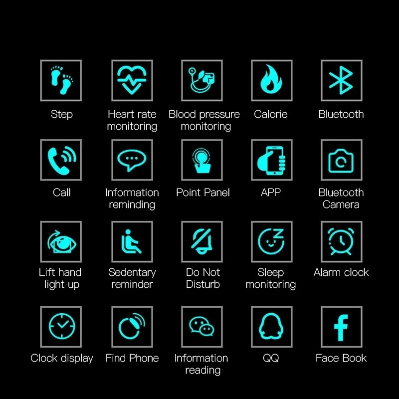 Особенности:Пульс, обнаружение кровяного давления, спортивный счетчик шагов (3D датчик), расход калорий, расстояние движения, связь Bluetooth, напоминание о входящем звонке, оповещение о информации, осветление рук, умный будильник, ищите браслет, дальнюю камеру, длительное напоминание о сидении, мониторинг сна, информационное нажатие (SMS, Facebook, Twitter, WhatsAPP и т. д.) Чтение информации и т. Д.Описание:▪100% новые и высококачественные▪Дисплей: цветной экран 0,96 HD▪IP67 водонепроницаемый▪Тип батареи: литий-полимерный аккумулятор▪Спорт: для Bluetooth 4,0 и Android4.3 или вышеДля Bluetooth 4,0 и IOS8.0 или выше** Прямая зарядка через USB (этот смарт-браслет не нуждается в зарядном кабеле, Просто вытащите ленту, Вы найдете usb-интерфейс.)Список товаров:1 умный Браслет1x Руководство пользователяХорошего дня