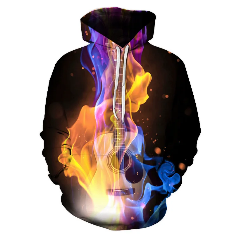 Толстовка мужская музыкальная с 3D принтом страстного пламени, гитары, модный тренировочный костюм, крутая Повседневная Толстовка в европейском и американском стиле