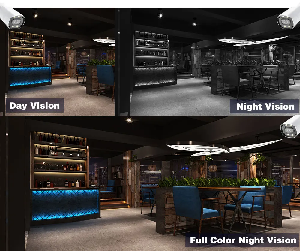 Камера оснащена двумя белый светильник и два ИК ночное видение светильник s, Поддержка Полный Цвет ночного видения и ИК ночное видение,Умный фильтр, отсекающий ИК-спектр автоматически переключается между днем и ночью, цвет toreduce в дневное время и повышает яркость изображения в ночное время. Вы можете получить яркие кадры наблюдения от рассвета до темноты.