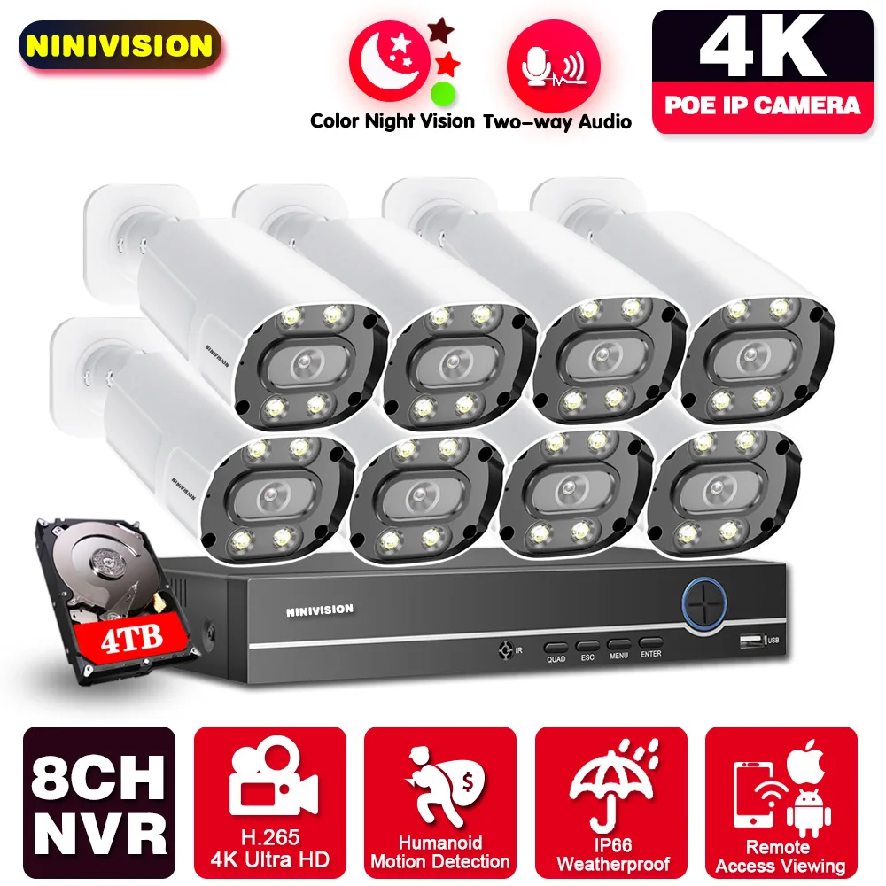 4K Ultra HD 8MP POE NVR комплект уличная CCTV Аудио запись система безопасности Полный Цвет ночного видения IP камера наружная домашняя камера видеонаблюдения камера набор