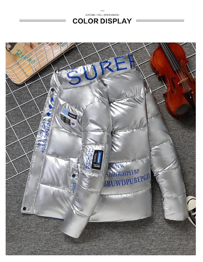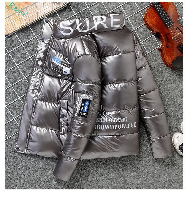 Мужская хлопковая одежда, Зимняя яркая Красивая утепленная куртка большого размера в Корейском стиле с воротником-стойкой