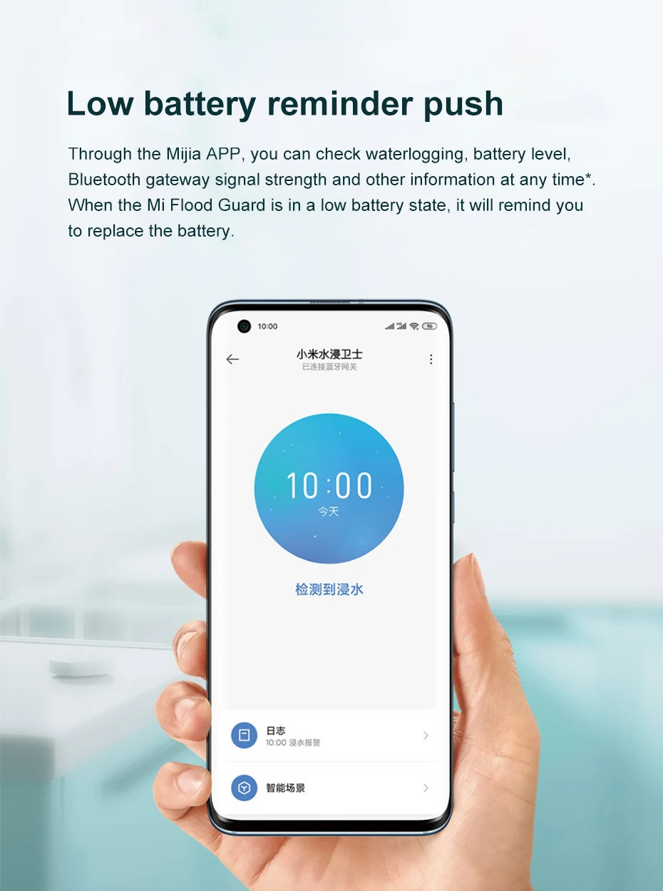 Основные характеристики:● Исключительная ситуация во времениXiaomi immersion Guards использует электрическую проводимость воды. Когда высота погружения достигает 1 мм, два металлических зонда образуют путь, чтобы связываться с другими интеллектуальными продуктами *, чтобы выдавать напоминания и принимать своевременные контрмеры, чтобы избежать больших потерь.● Локальный пульт дистанционного управления также оповещаетЗащита от погружения в воду Xiaomi может взаимодействовать с динамиками Xiaoai. При обнаружении переливания воды динамики Xiaoai будут воспроизводить звуковые напоминания, а мобильный телефон также получит уведомление о наводнениях.● Кнопка напоминания о низкой мощностиЧерез приложение Mijia информацию, такую как журнал наводнений, мощность батареи и сила сигнала стоматологического шлюза, можно проверить в любое время *. Когда защита погружения в просо находится в состоянии низкой мощности, это также напомнит о замене батареи.Характеристики:Модель продукта: SJWS01LMРазмер изделия: 50x17 ммРабочий размер: 0 ° C ~ 55 ° CКласс защиты: IP67