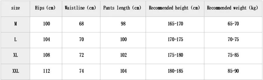 Примечание: Если вы не уверены в размере, пожалуйста, сообщите нам свой вес и информацию о талии и т. д. Чтобы мы помогли вам выбрать правильный размер.