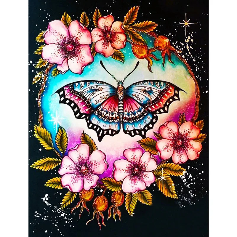 Алмазная живопись с бабочками, 5D полноразмерная Алмазная вышивка сделай сам, Цветочная круглая стразы, вышивка крестиком, искусство, домашний декор