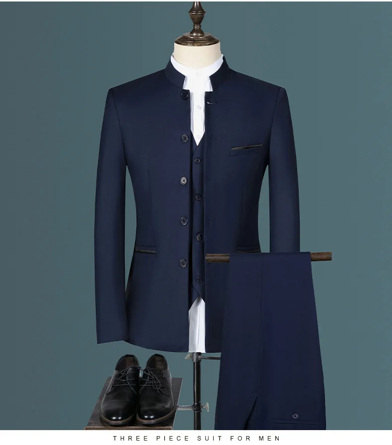 Модный мужской повседневный бутик 2022, белый костюм в китайском стиле с воротником-стойкой, приталенные блейзеры, куртка, брюки, жилет