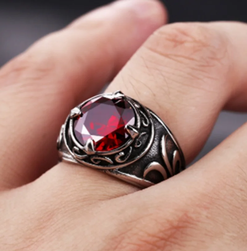 Новое металлическое кольцо в стиле ретро с красным Цирконом мужские...