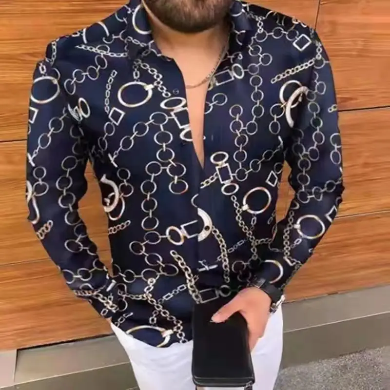 Мужская атласная рубашка в стиле панк, повседневная приталенная рубашка с длинными рукавами, длинным рукавом и цифровым принтом, весна 2021