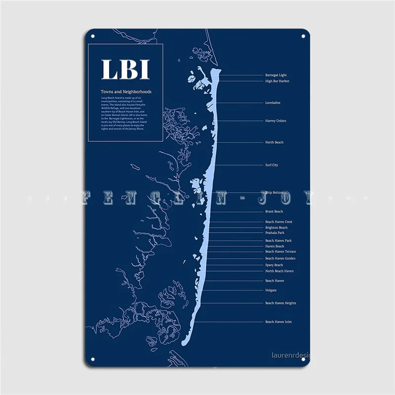 Lbi длинный пляж остров Nj иллюстрированная Карта города металлический знак классический паб гараж украшение стены пещера жестяной знак плакат