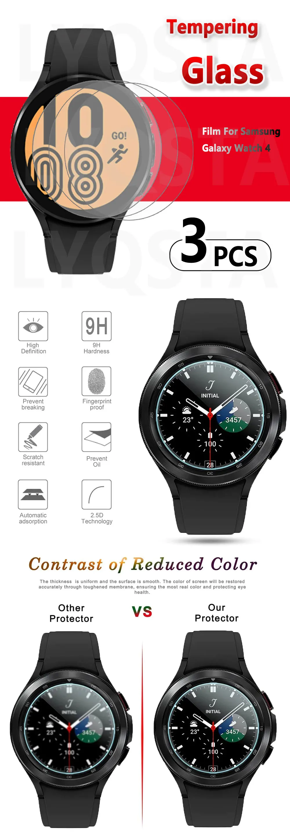Защитное стекло для Samsung Galaxy Watch 4, 40, 44 мм, 3 шт.